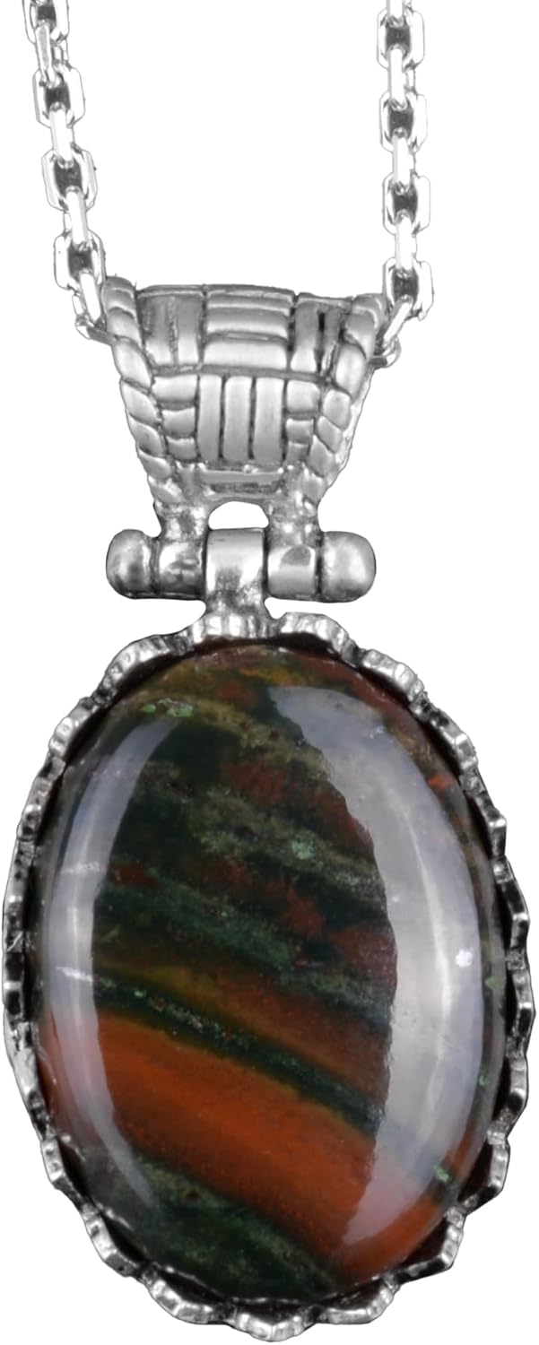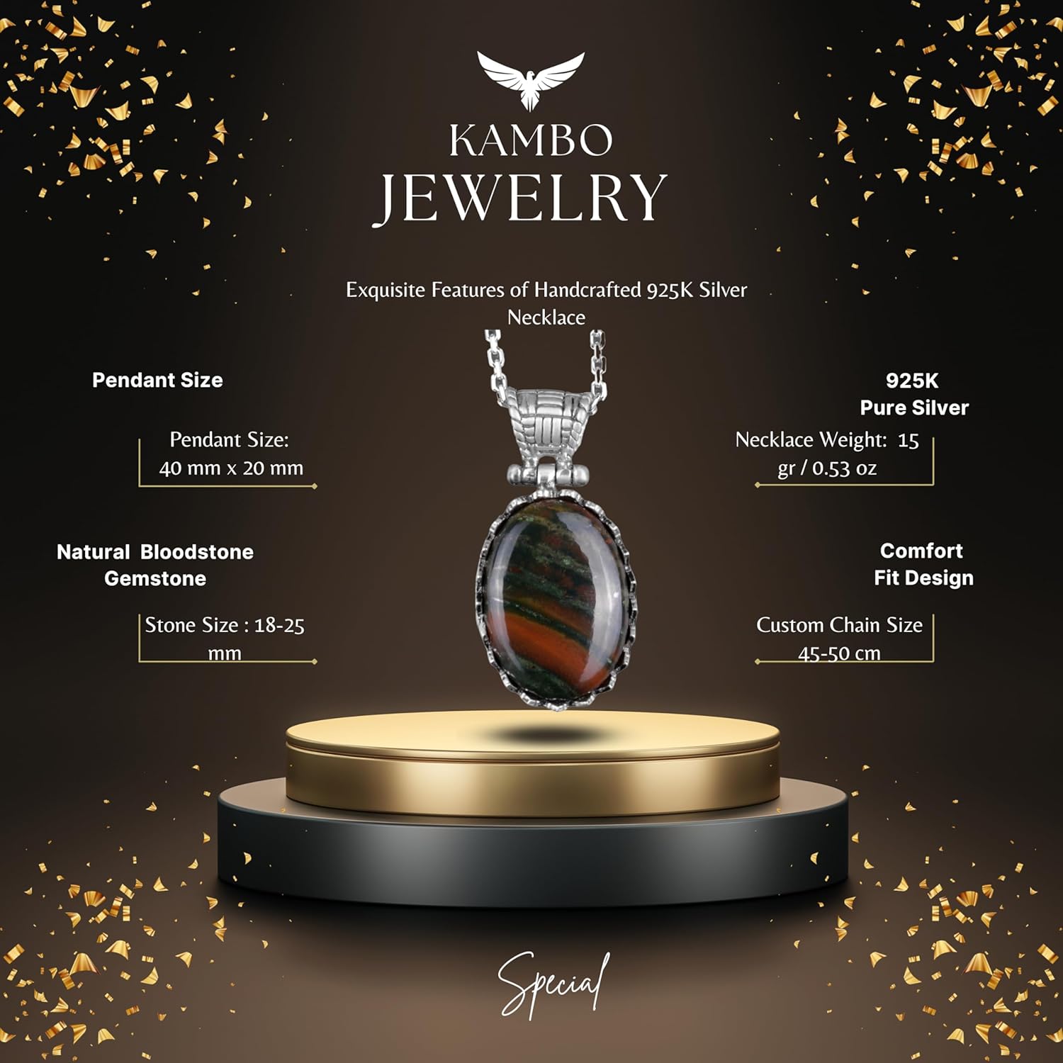 Gerçek Doğal Taş Kolye - 925 Ayar Gümüş Kolye (Yeşil Kan Taşı)