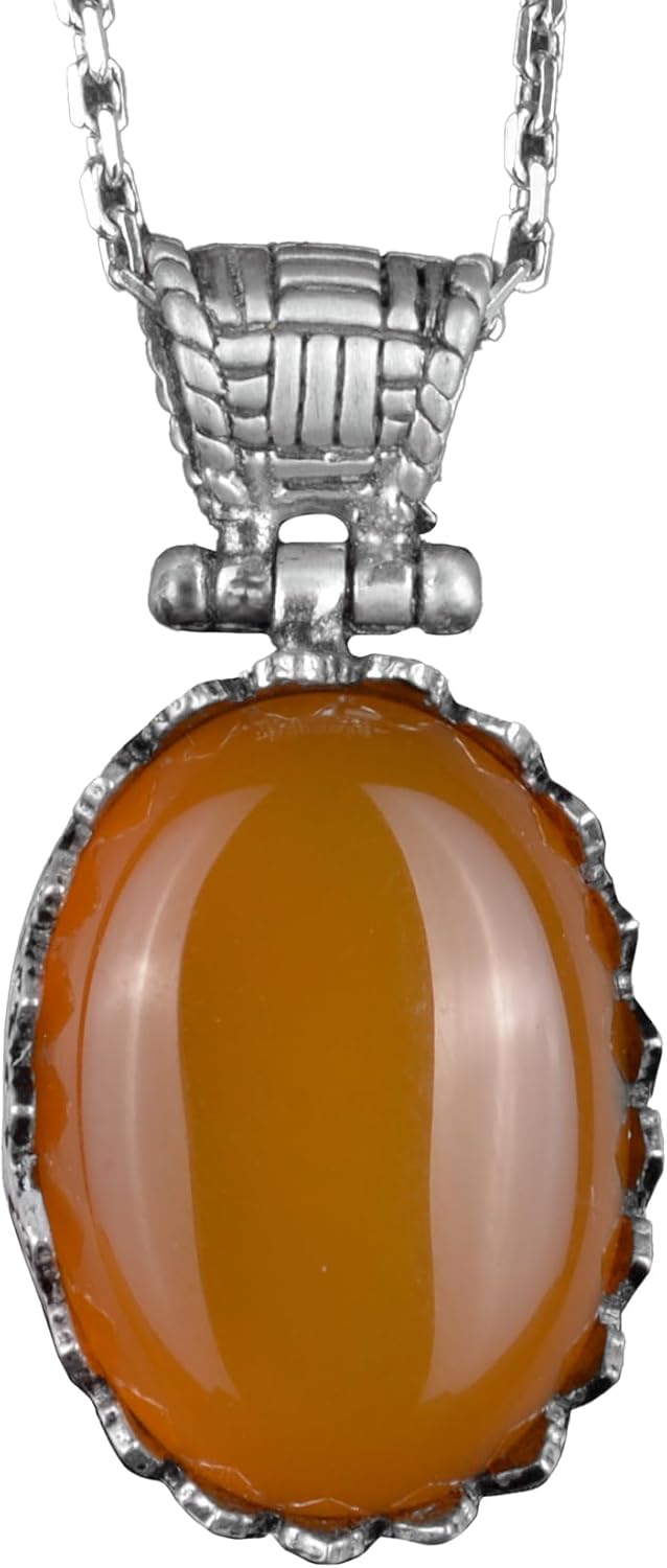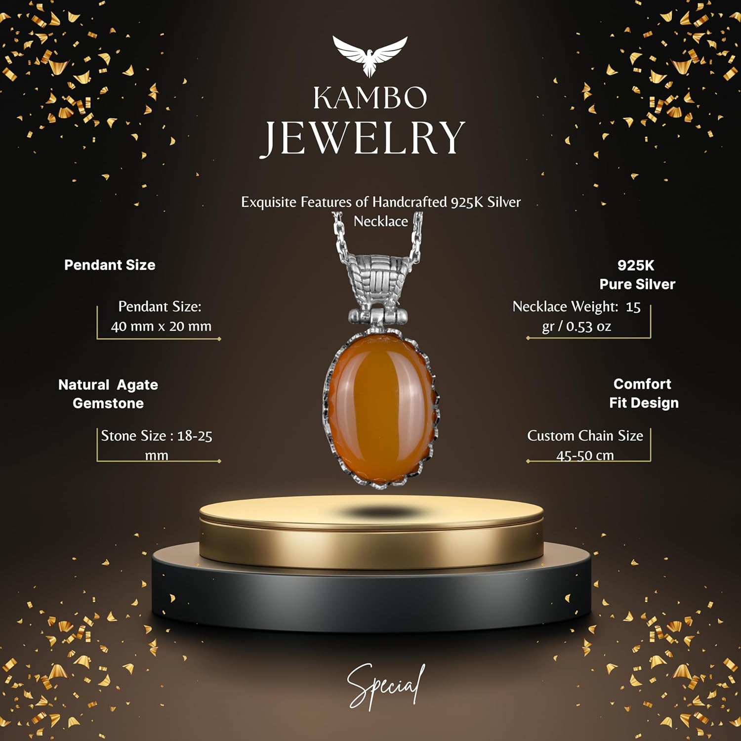 Gerçek Doğal Taş Kolye - 925 Ayar Gümüş Kolye (Sarı Akik)