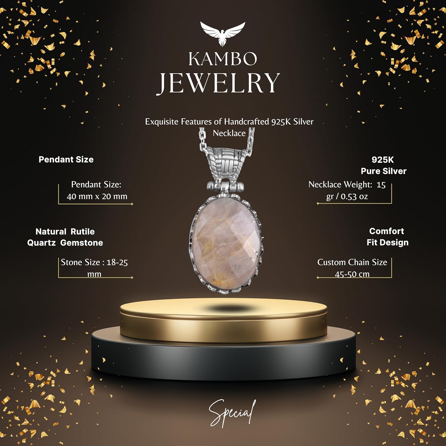 Gerçek Doğal Taş Kolye - 925 Ayar Gümüş Kolye (Rutil Kuvars)