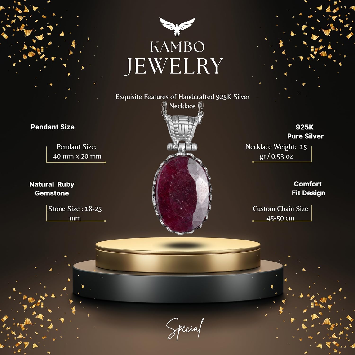 Gerçek Doğal Taş Kolye - 925 Ayar Gümüş Kolye (Yakut)