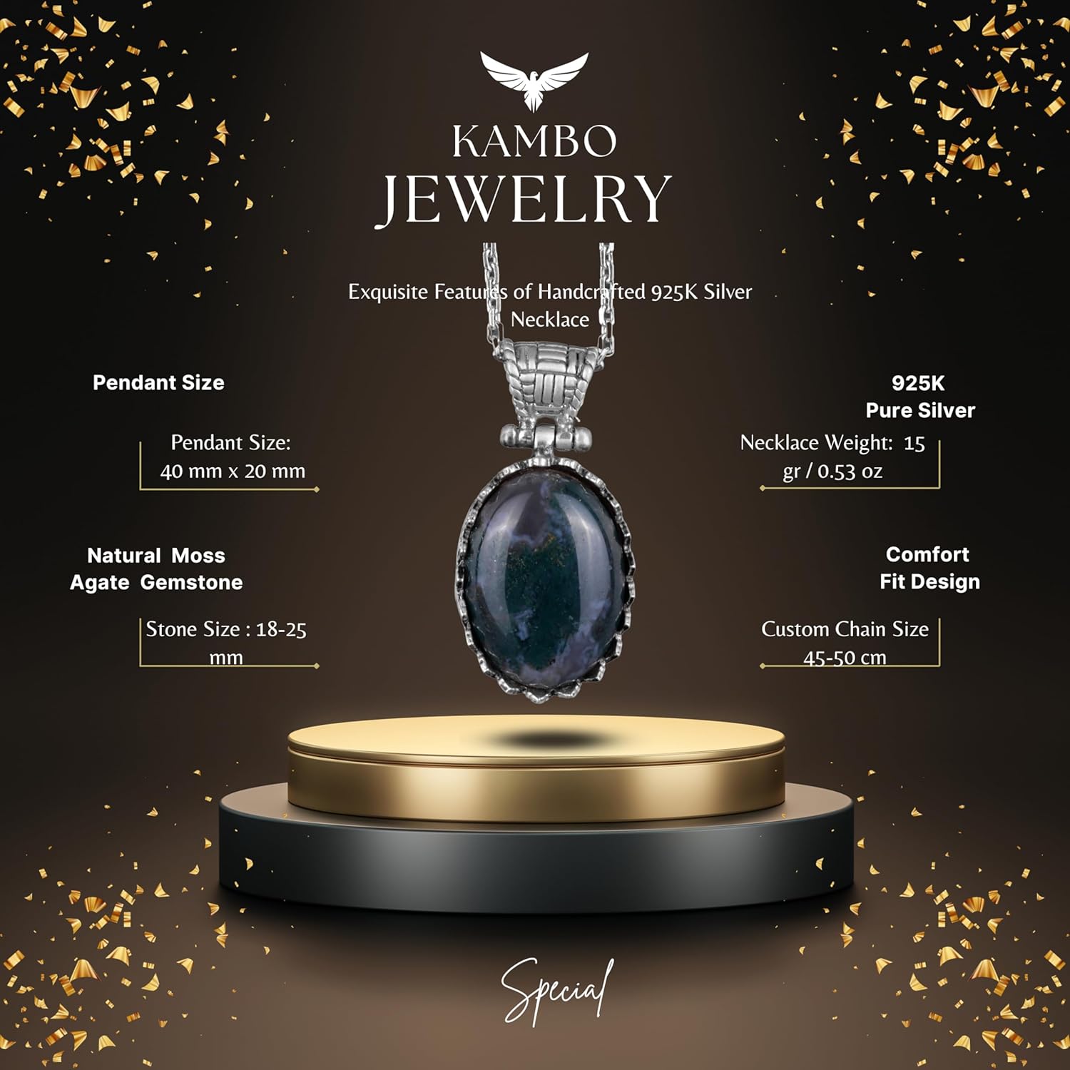 Gerçek Doğal Taş Kolye - 925 Ayar Gümüş Kolye (Moss Agate)