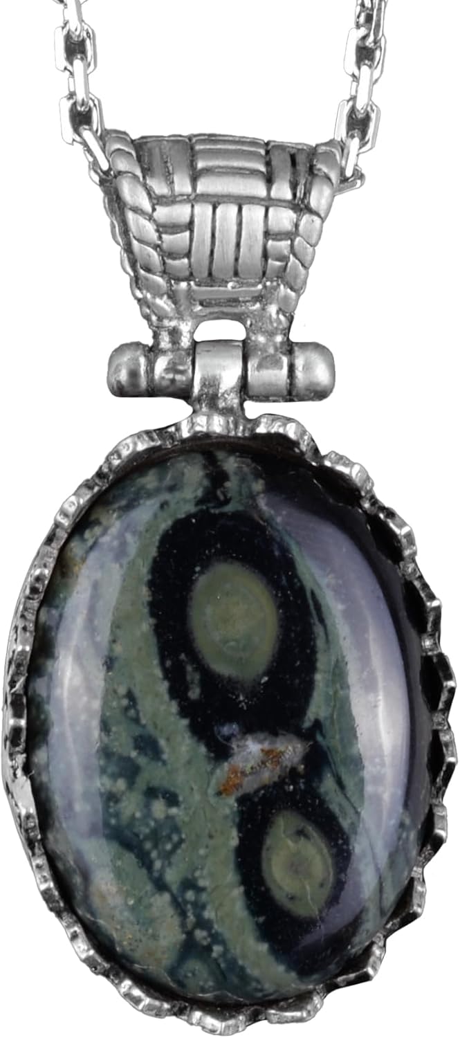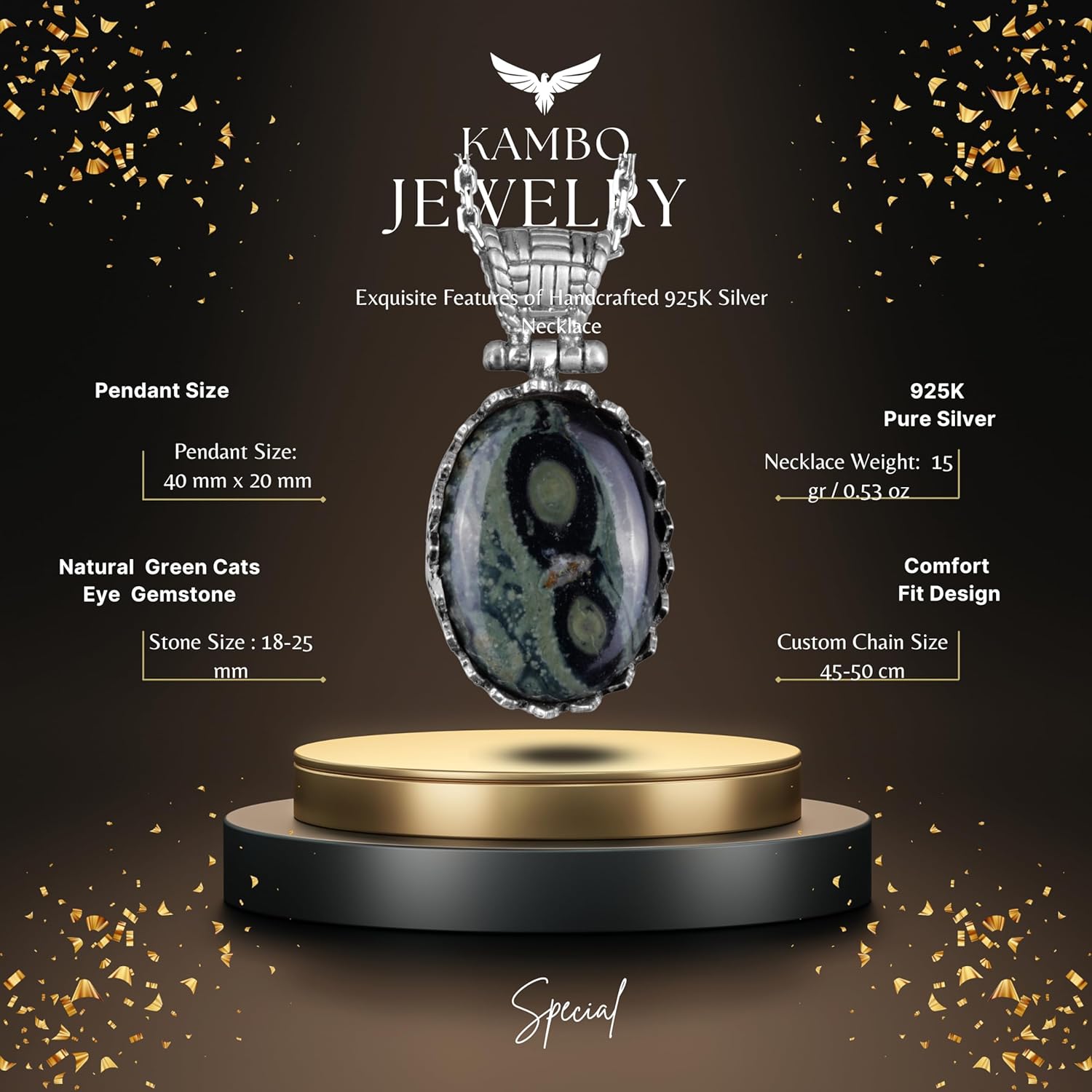 Gerçek Doğal Taş Kolye - 925 Ayar Gümüş Kolye (Yeşil Kedi Gözü)