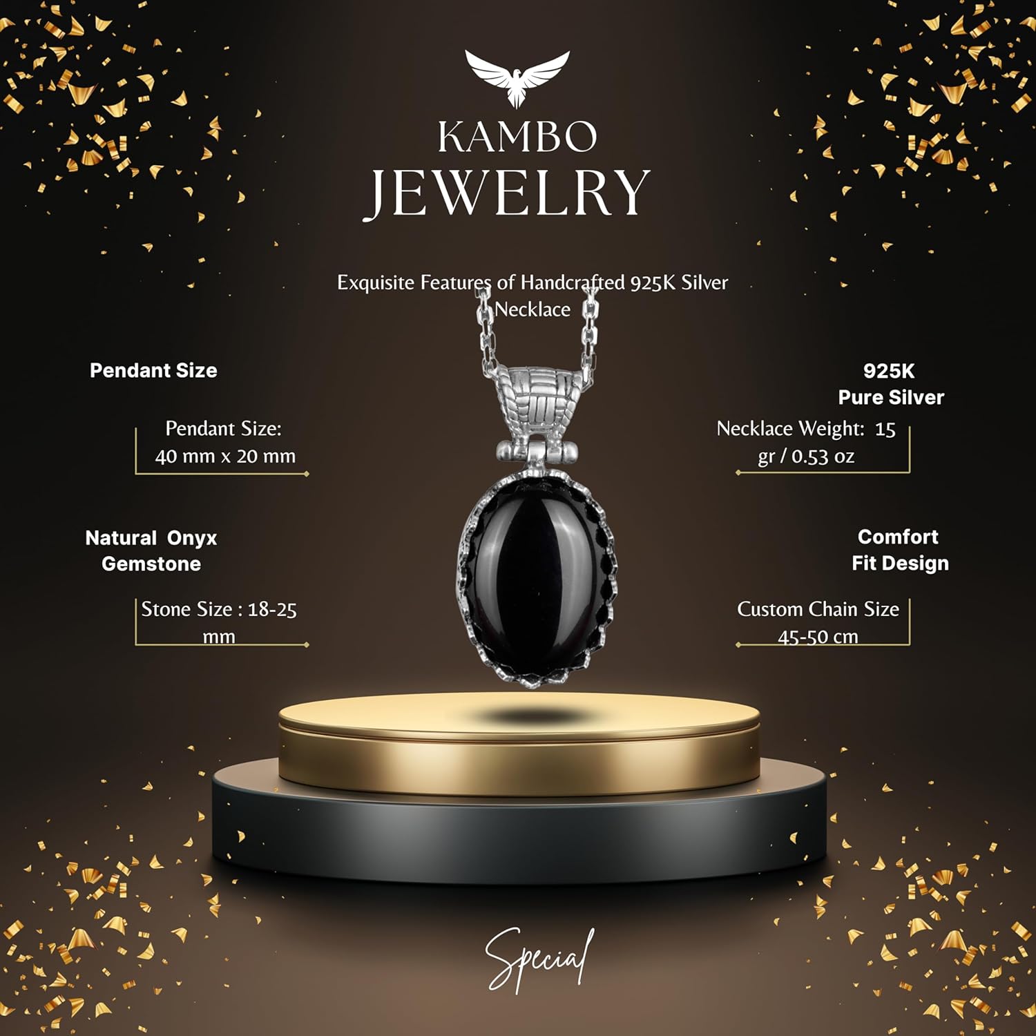 Gerçek Doğal Taş Kolye - 925 Ayar Gümüş Kolye (Oniks)