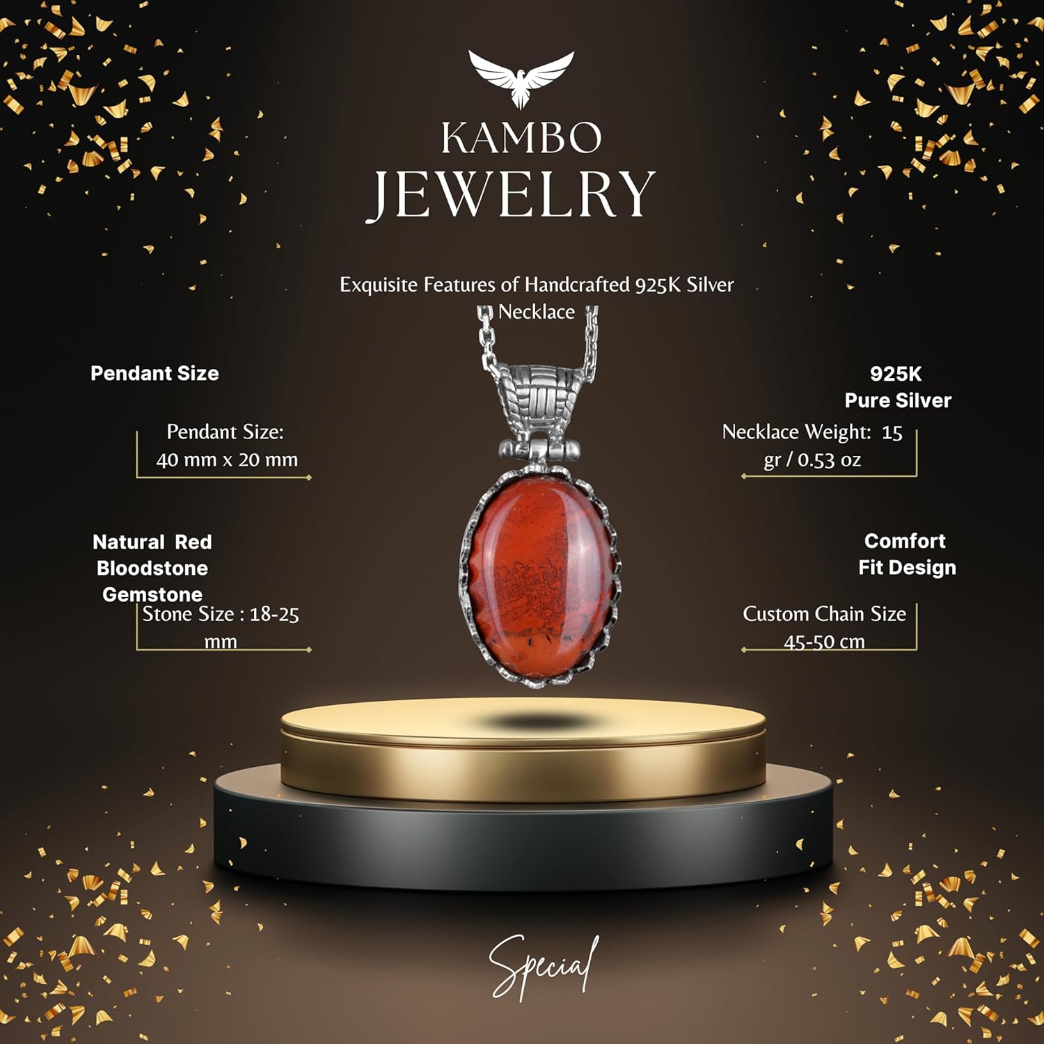 Gerçek Doğal Taş Kolye - 925K Gümüş Kolye (Kırmızı Kan Taşı)