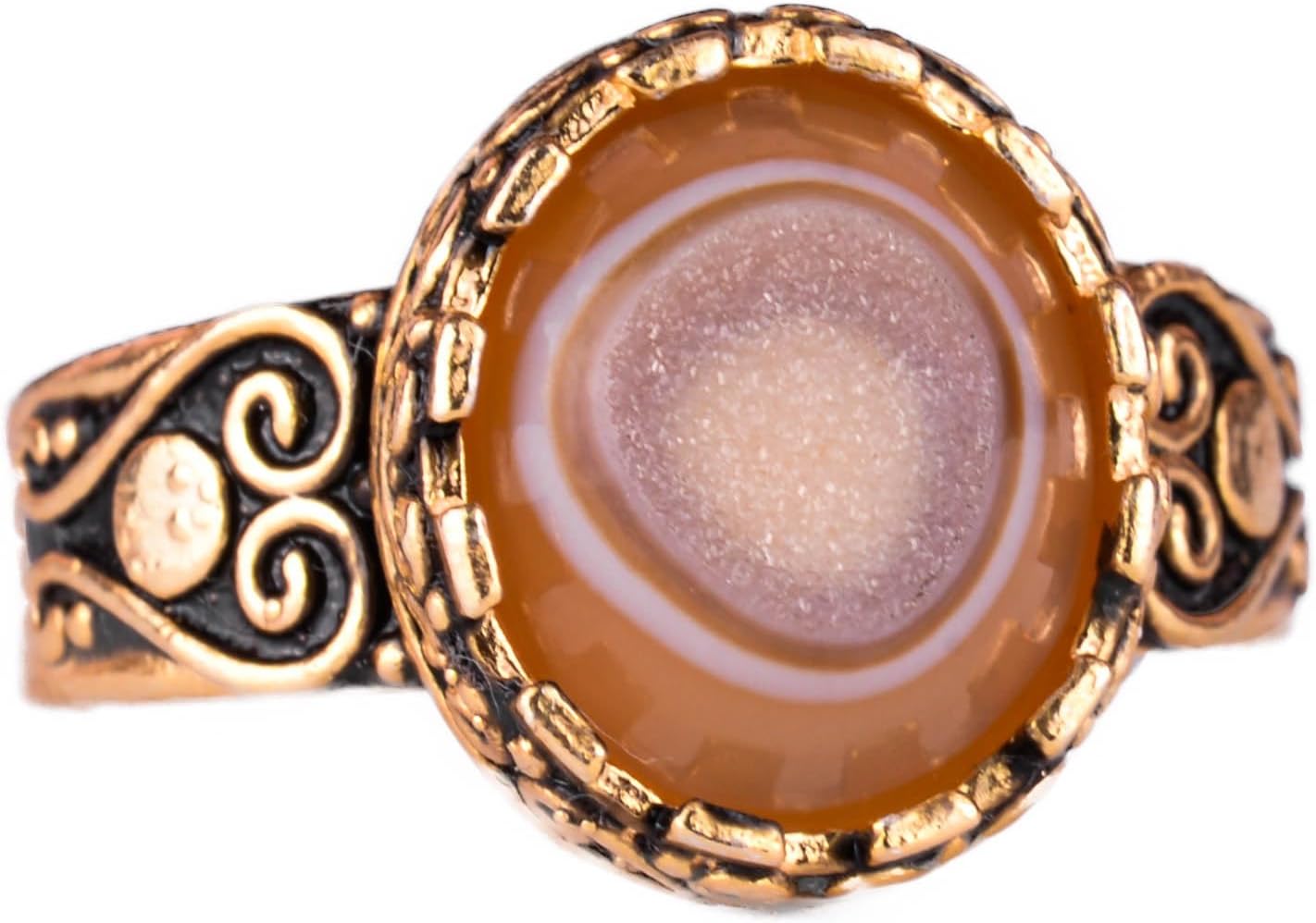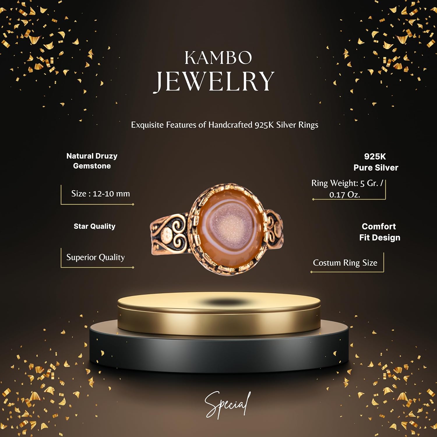 925 Ayar Gümüş, Gerçek Doğal Druzy Kuvars Taşı ile Kaplama Yüzük, El Yapımı Kadın Yüzüğü (Kahverengi)
