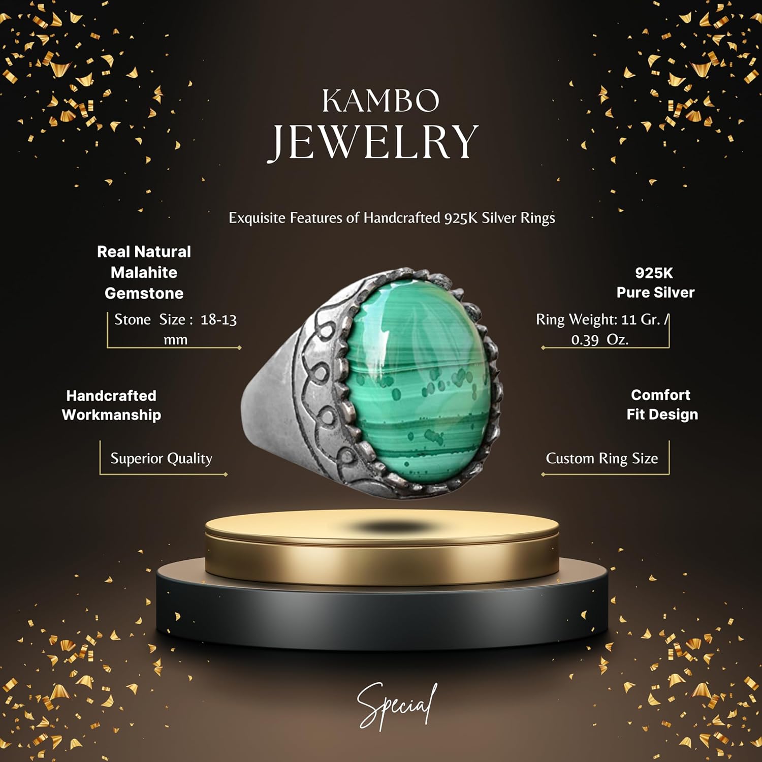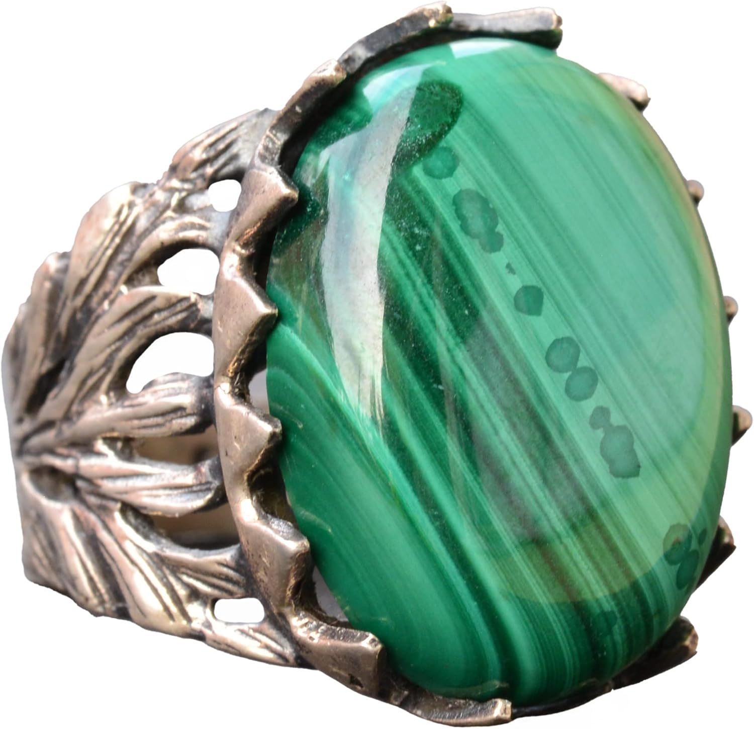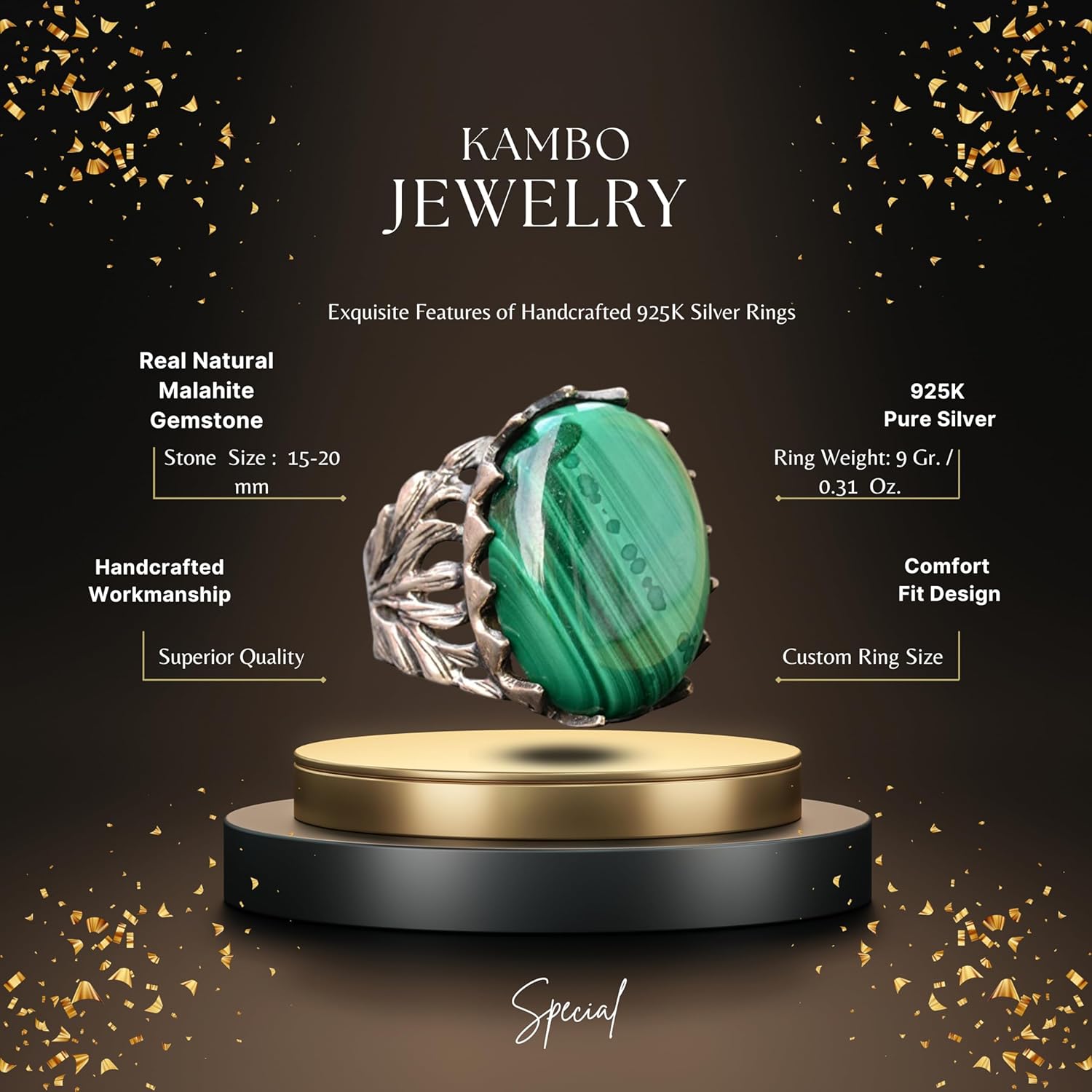 Doğal Malakit Taşlı Yüzük, 925 Ayar Gümüş Yüzük