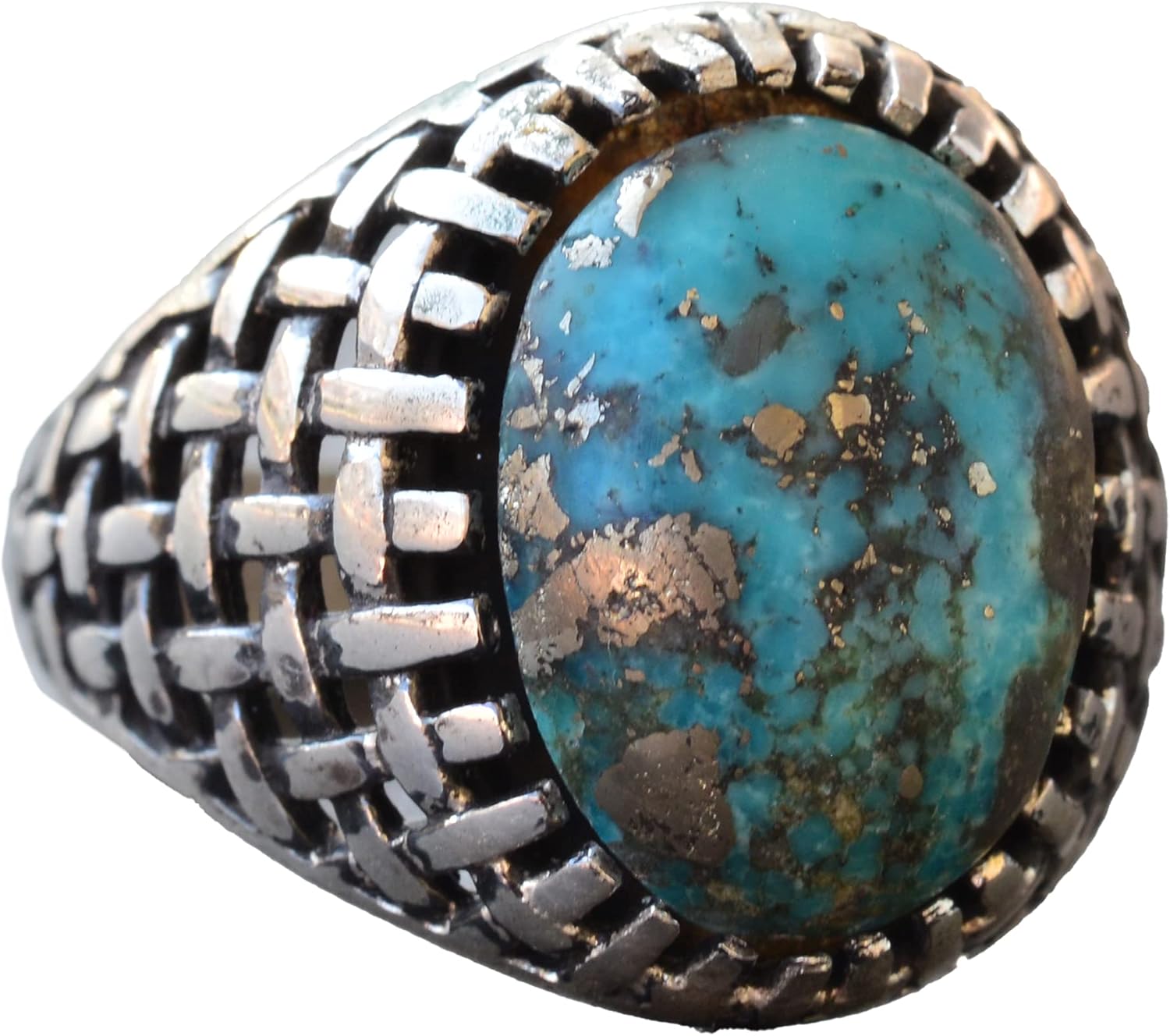 Arizona Turkuaz Taş Yüzük, Ham Doğal Taş, Sterlin Gümüş Yüzük, Mavi