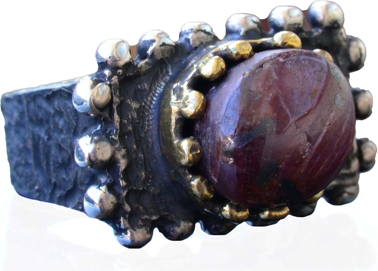 Doğal Star Ruby Taşlı Antik Yüzük - 925 Ayar Gümüş Unisex Yüzük