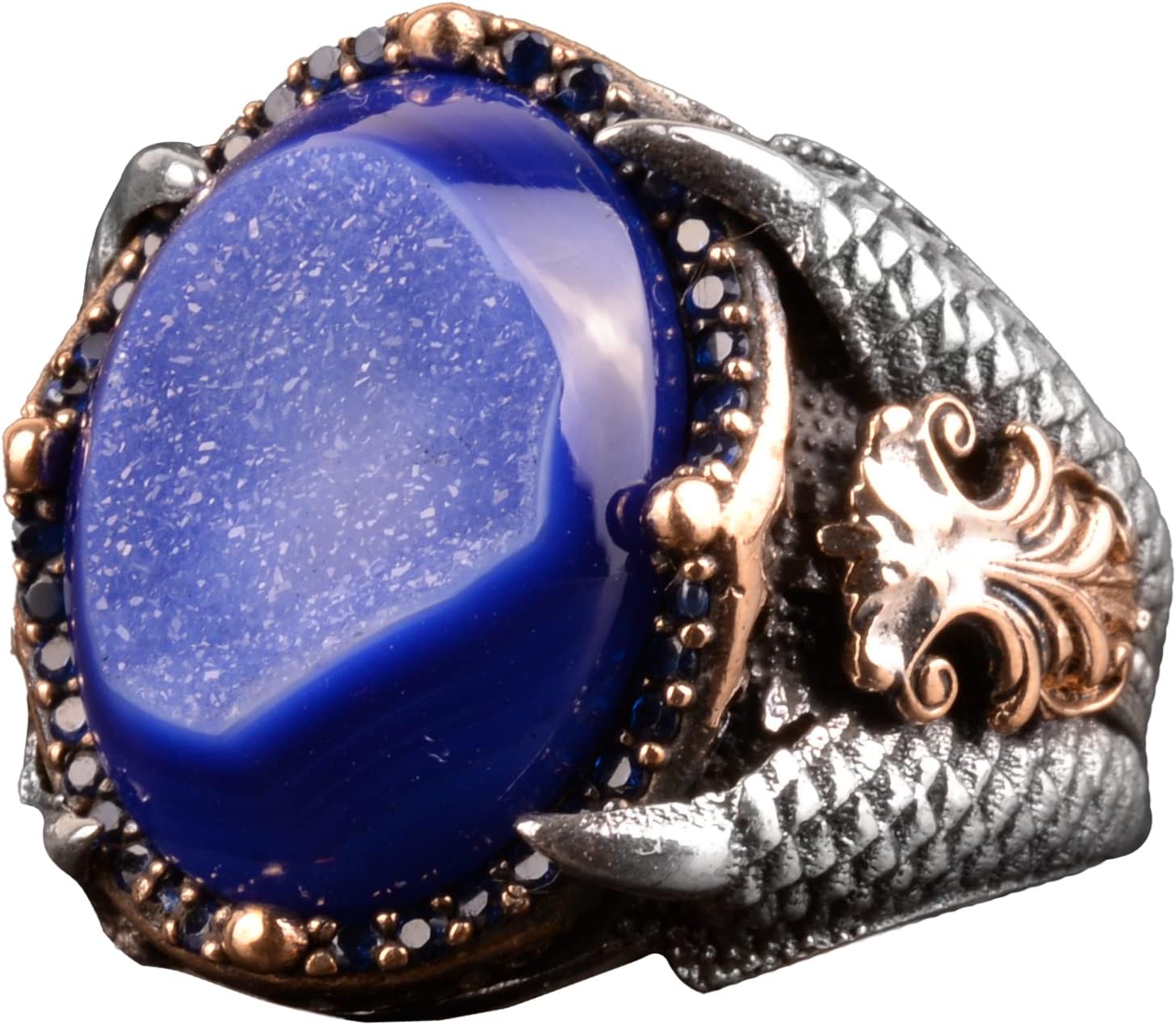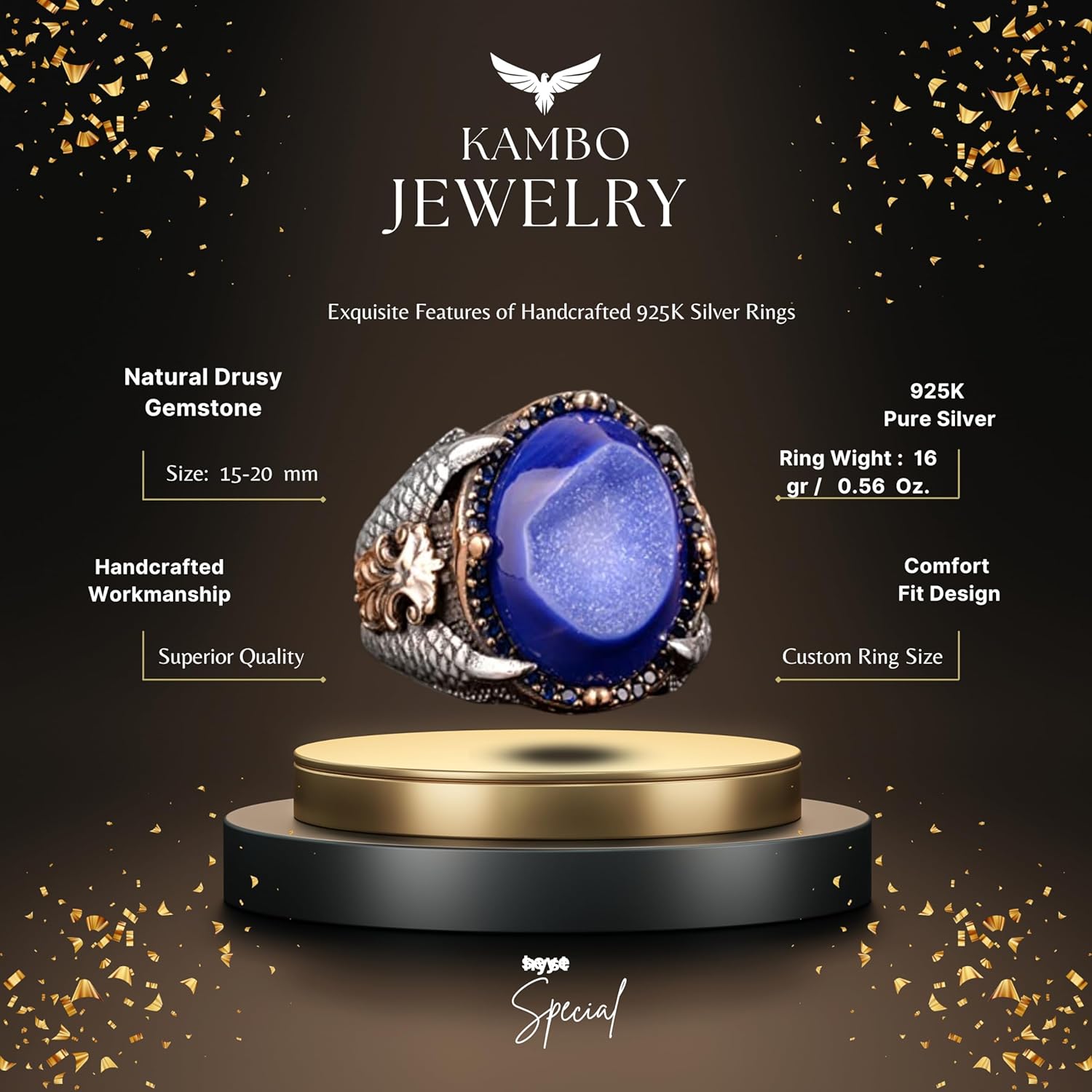 Doğal Druzy Kuvars ile 925 Ayar Gümüş Yüzük: Mavi, Lacivert, Yeşil, Kahverengi Varyasyonlar (Lacivert)