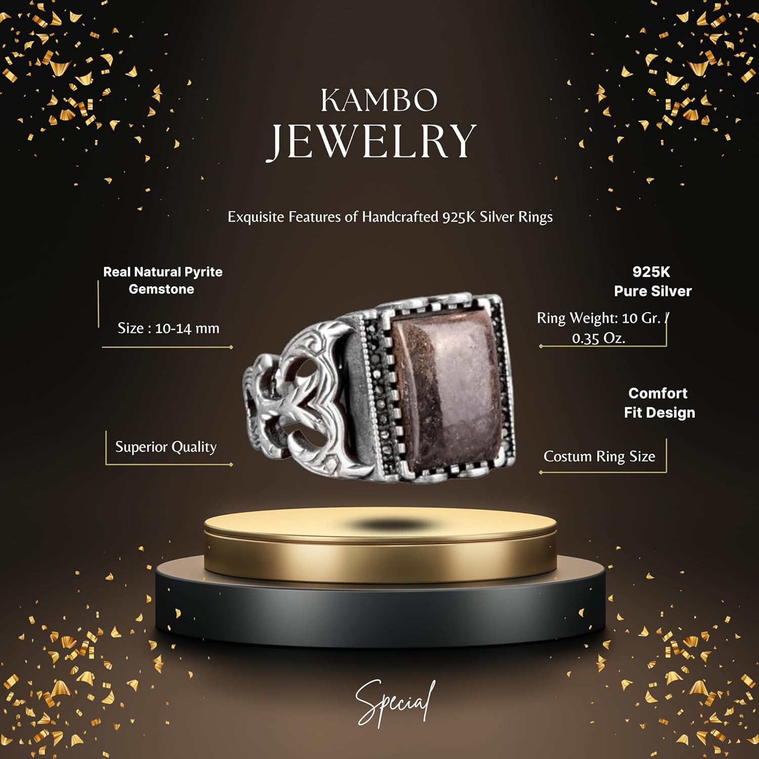 925 Ayar Gümüş Yüzük, Gerçek Doğal Pirit Taşı Yüzük, Kare Şekilli Pirit Yüzük