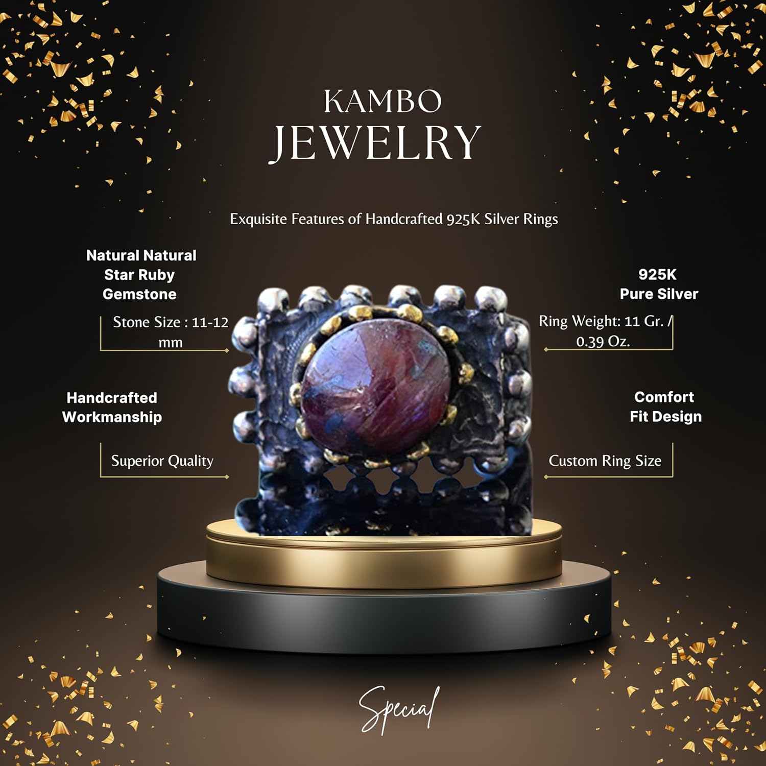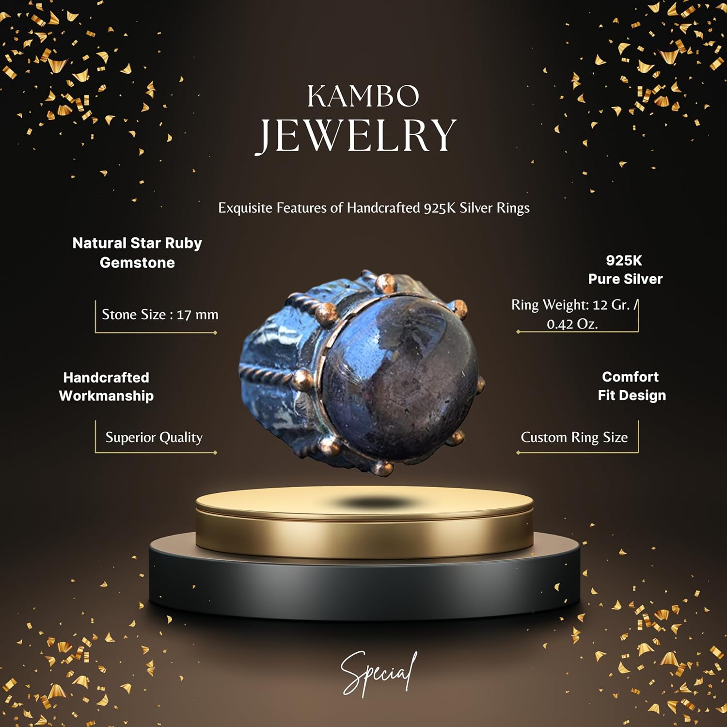 Doğal Yıldız Yakutu Taşlı Antik Yüzük - 925 Ayar Gümüş Unisex El Yapımı Yüzük