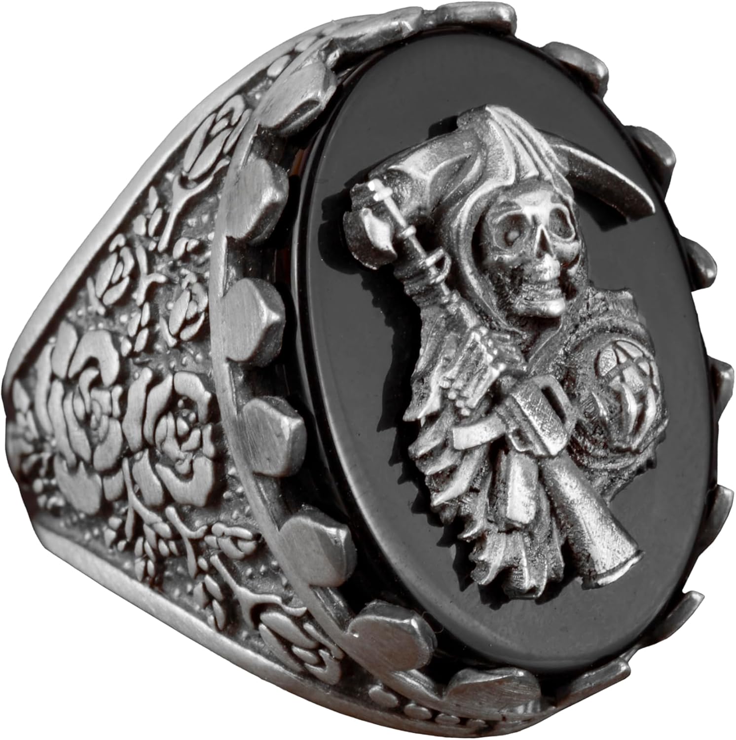 925 Ayar Gümüş Yüzük, Gerçek Doğal Taş Yüzük, Grim Reaper Yüzüğü