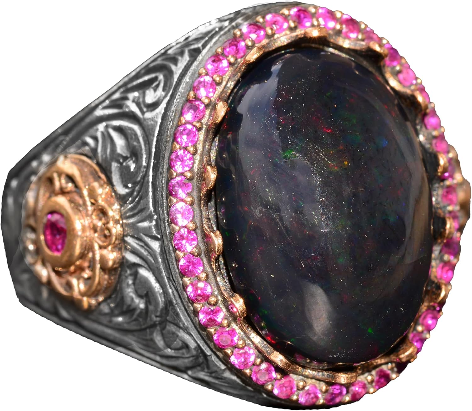Doğal Avustralya Opal Taşlı Yüzük, 925 Ayar Gümüş Yüzük, Opal Yüzük