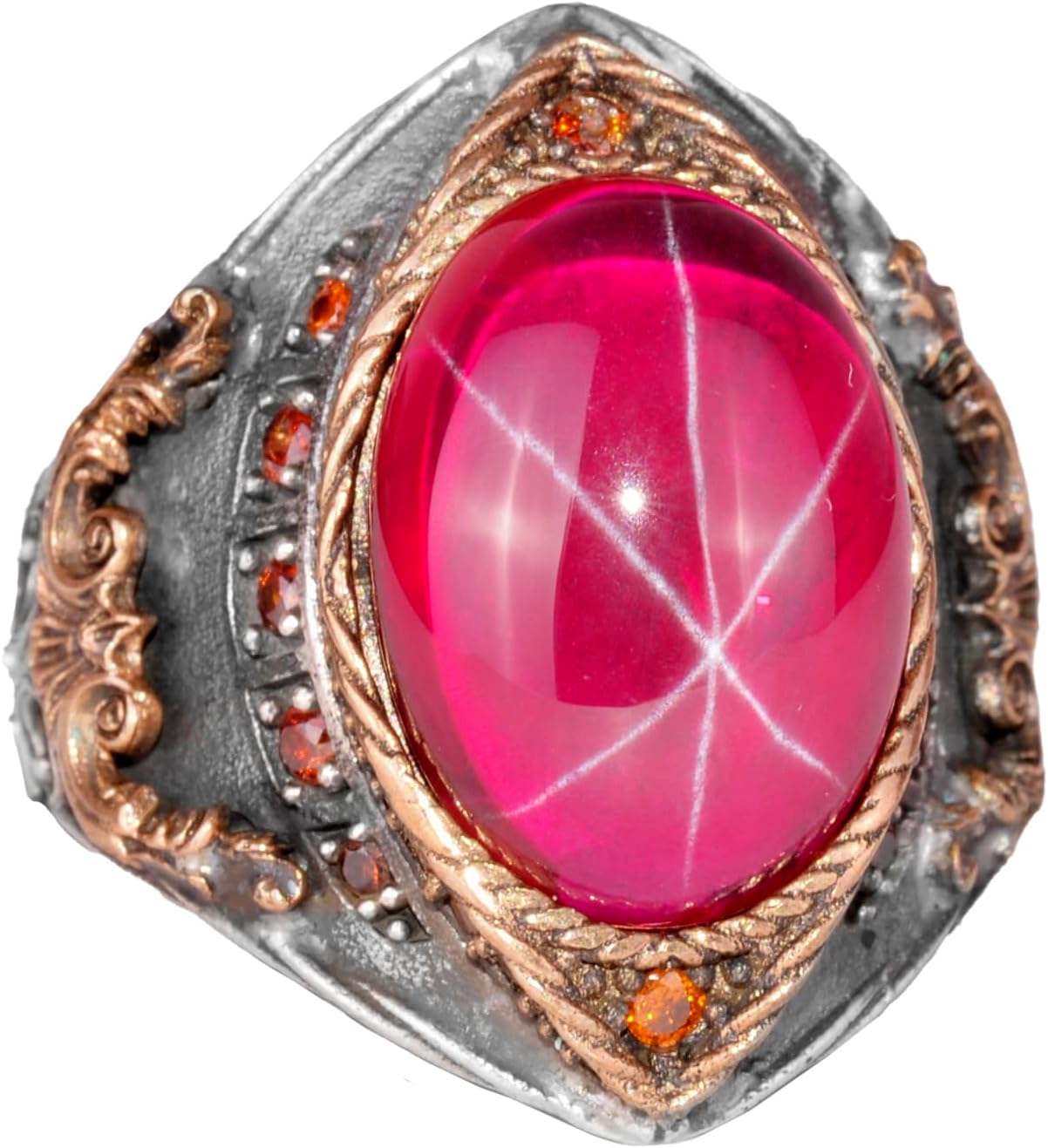 Gerçek Doğal Yıldız Yakutu Taşlı Yüzük, El Yapımı Yüzük, Sultan Yüzüğü, 925 Ayar Gümüş Yüzük