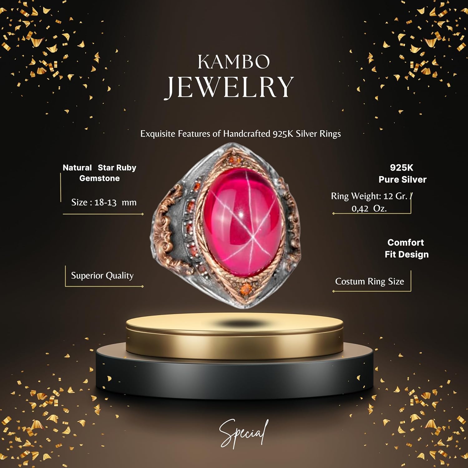 Gerçek Doğal Yıldız Yakutu Taş Yüzük, Kral Yüzüğü, 925 Ayar Gümüş Yüzük