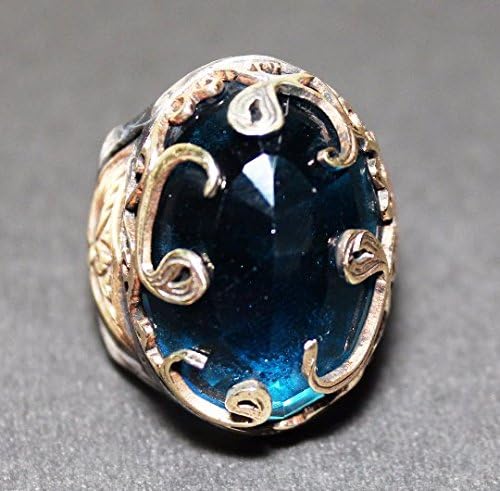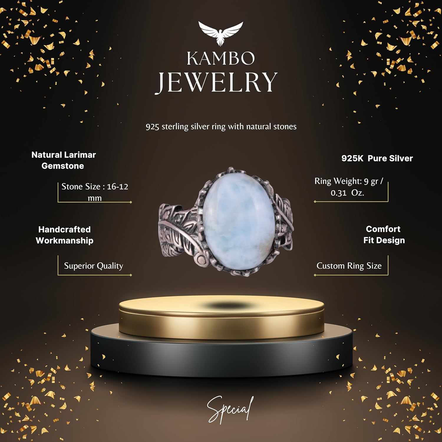 Sterling Gümüş Kadın Yüzük, Gerçek Doğal Larimar Taşı ile, Vintage Bohem Tasarım