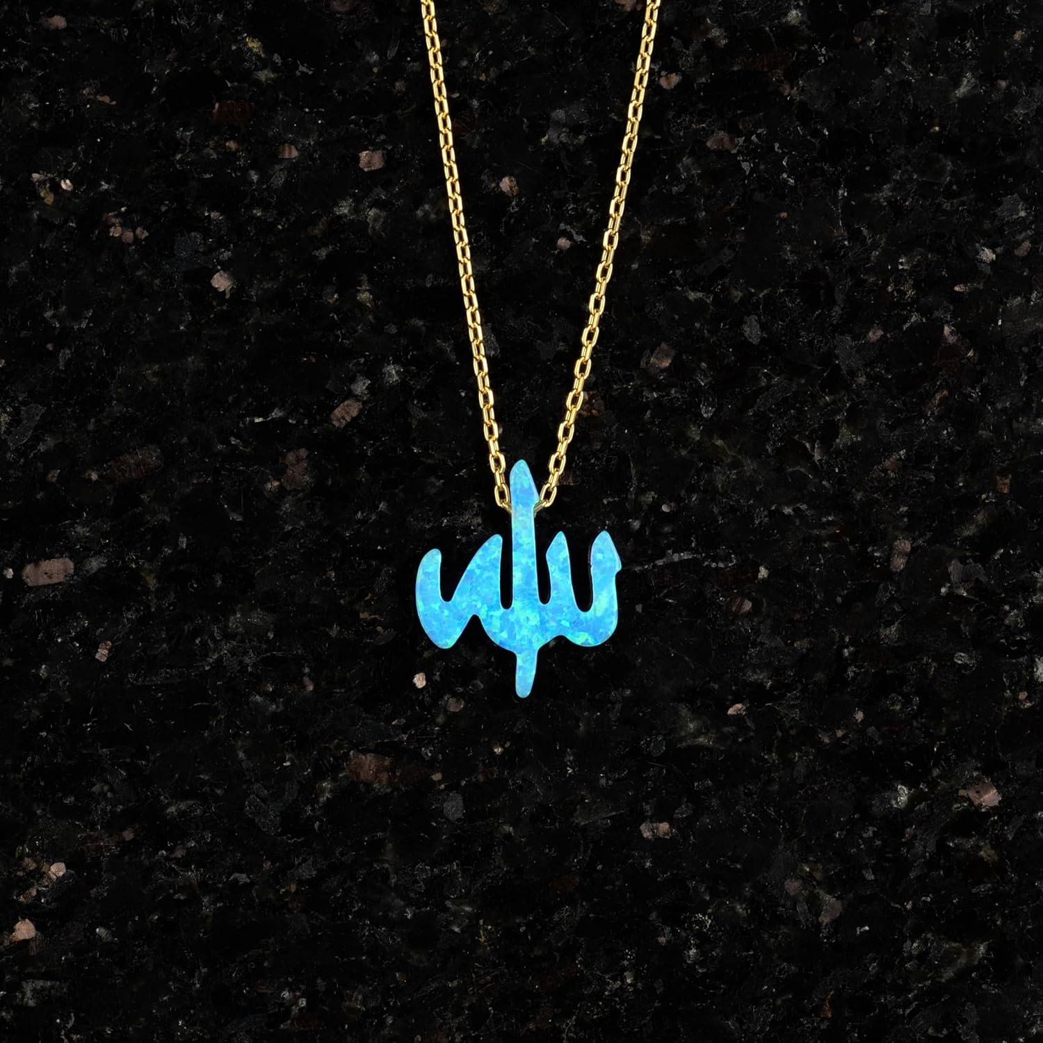 Opal Kolye, 925 Ayar Gümüş Kolye, Allah İsimleri Kolyesi, Altın Kaplama Gümüş Zincir
