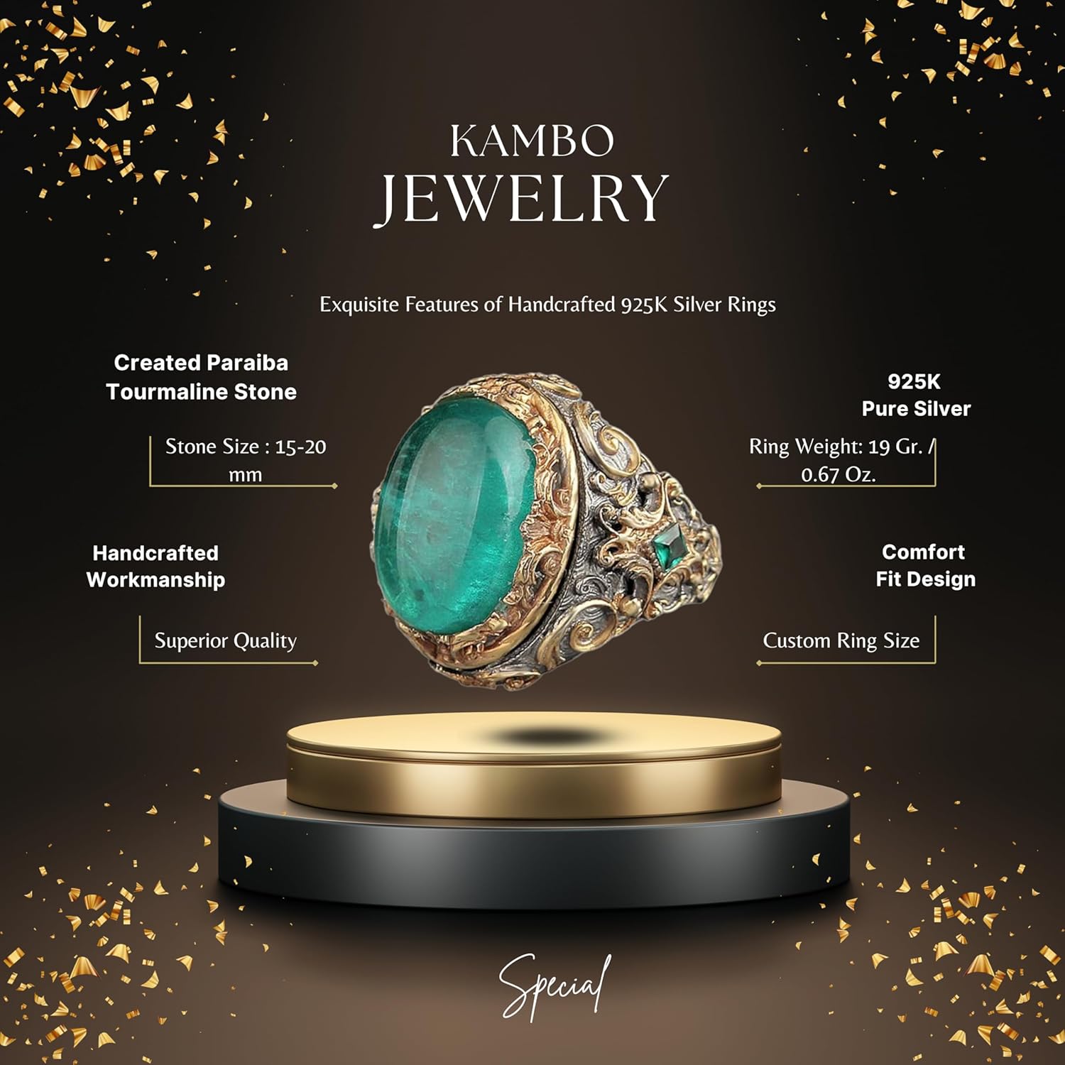 Paraiba Yapay Taşlı Gümüş Yüzük, Rodaj Kaplama Gümüş Yüzük, 925 Ayar Gümüş Yüzük, Stacking Yüzük, Yeşil
