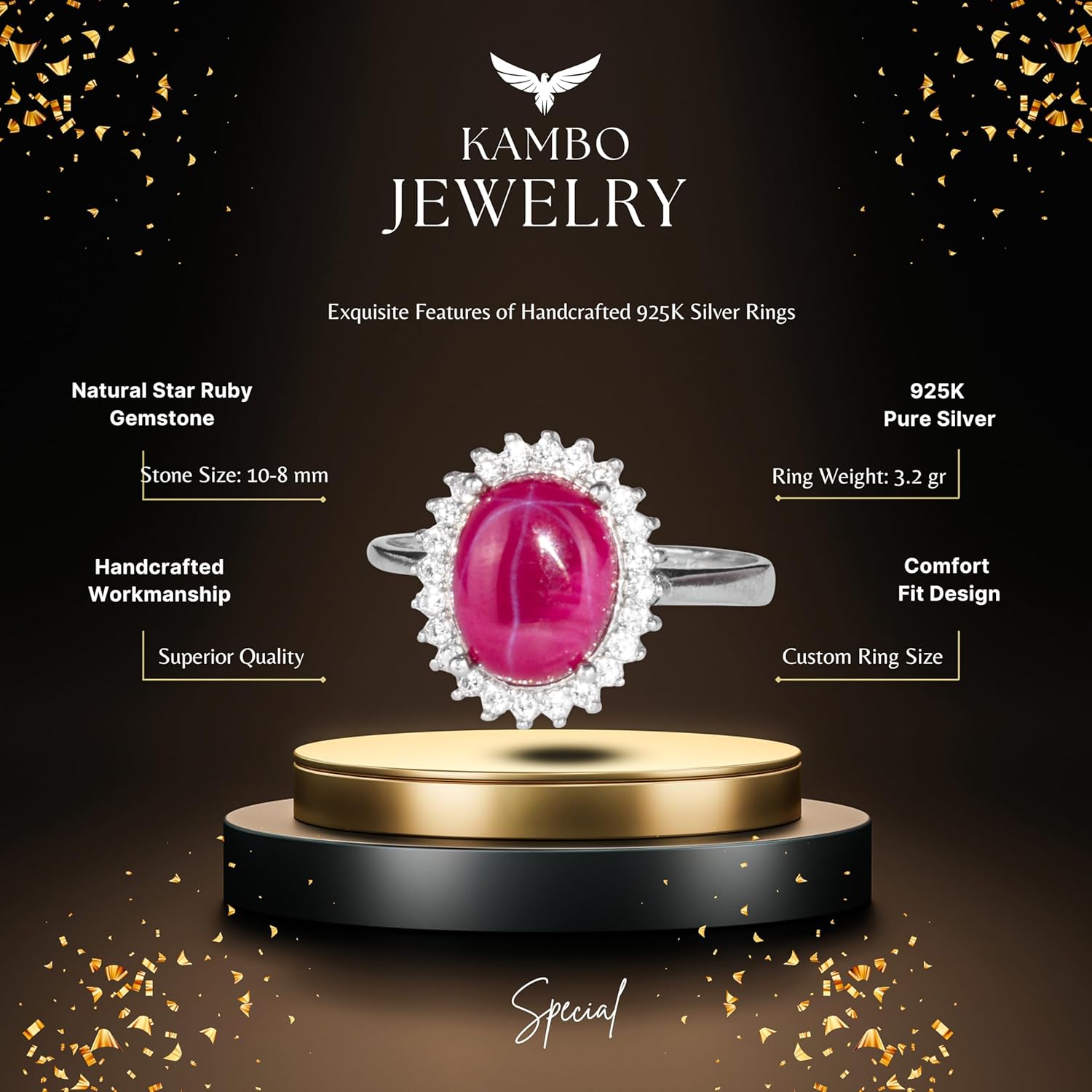 Sterling Gümüş Kadın Yüzük Gerçek Doğal Taş - Şık Tasarım (Yıldız Yakutu)
