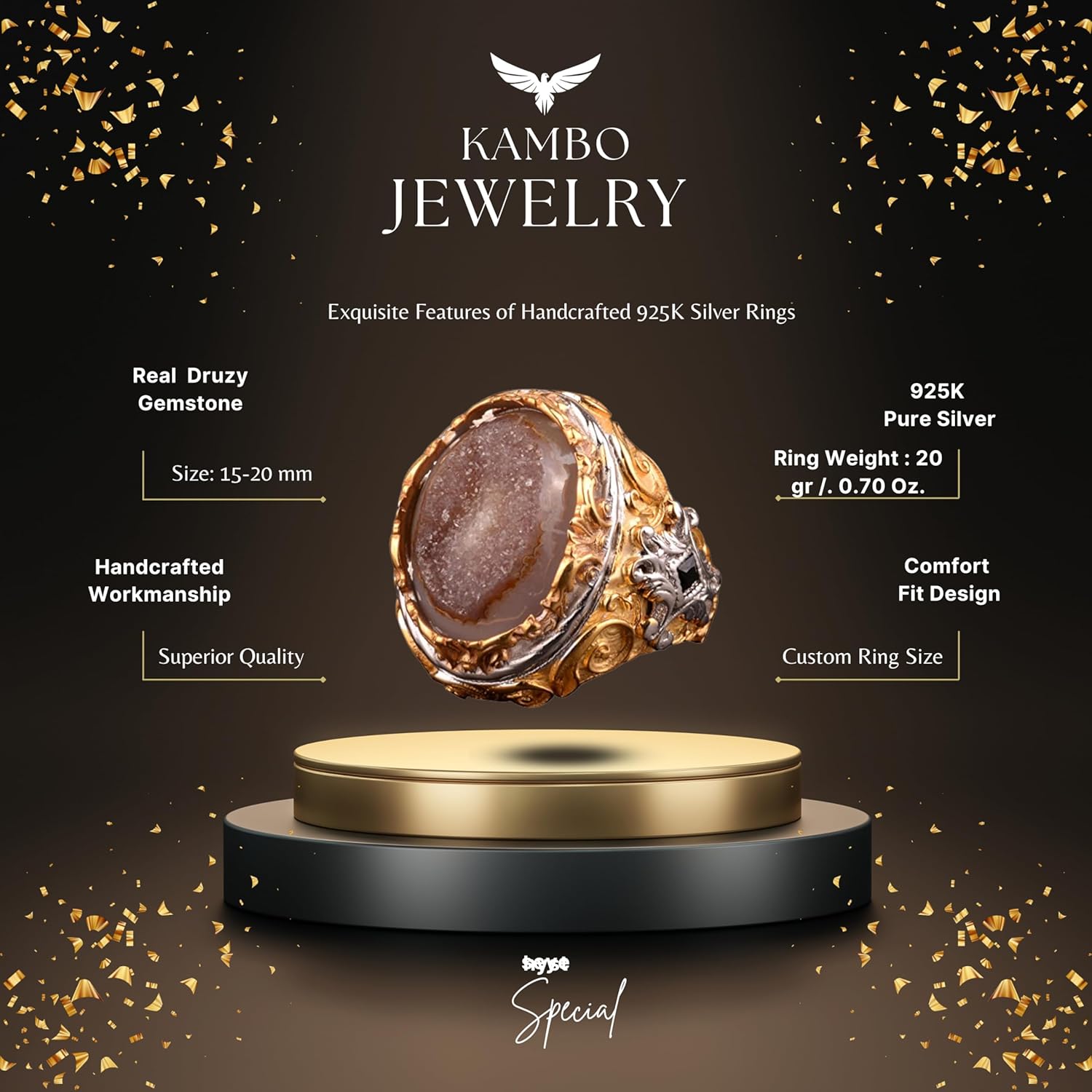 Sterling Gümüş Doğum Taşı Yüzükleri: Gerçek Kristal Druzy Kuvars Pembe, Lacivert, Kahverengi, Mavi, Sarı (Kahverengi)