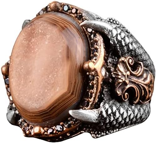 Doğal Druzy Kuvars ile Gümüş Doğum Taşı Yüzüğü - Gümüş Erkek Büyük Yüzük