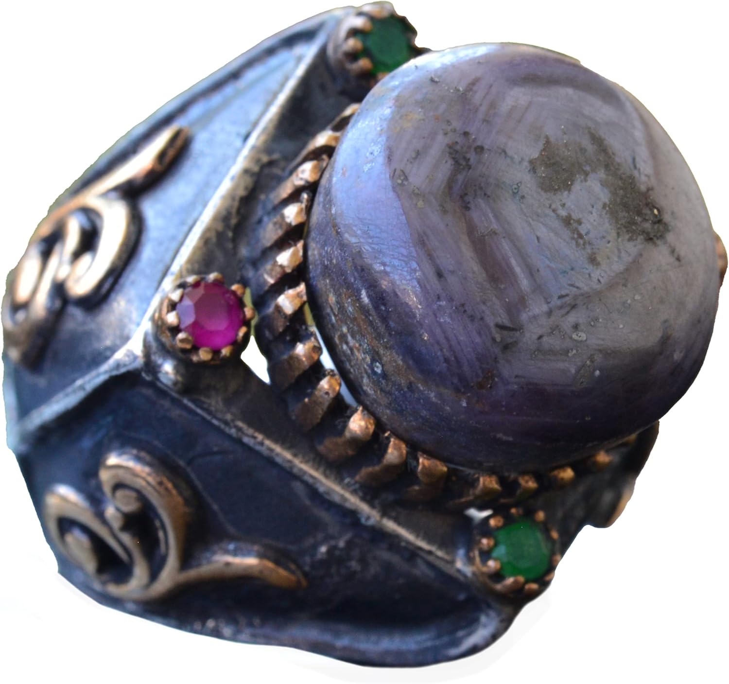 Doğal Star Ruby Taşlı Antik Yüzük - 925 Ayar Gümüş Unisex Sultan Yüzük