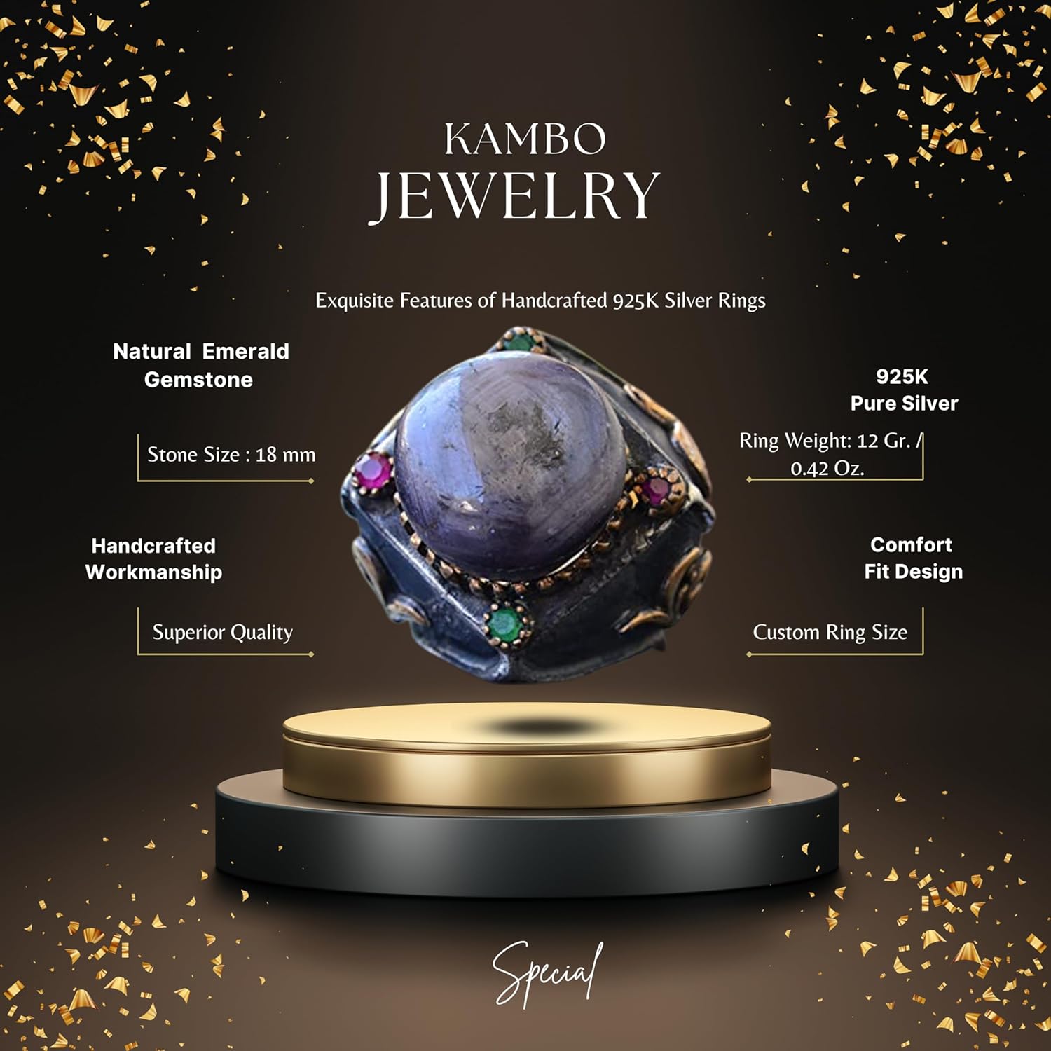Doğal Yıldız Kedi Gözü Taşı Gümüş Unisex Sultan Yüzük - Kraliyet ve Gizemli