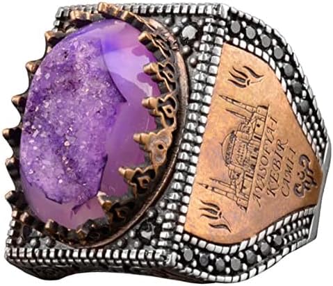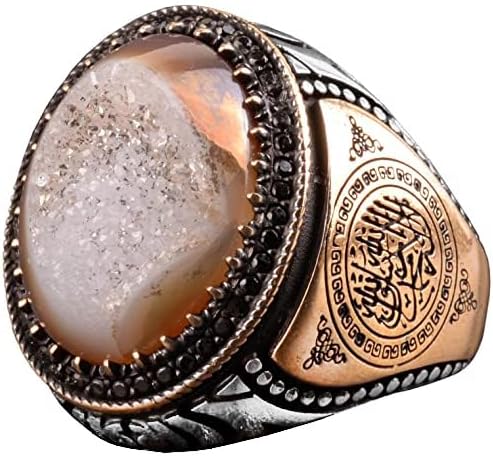 Gerçek Doğal Druzy Kuvars Taşı Yüzük, İslami Yüzük, Sterlin Gümüş Yüzük