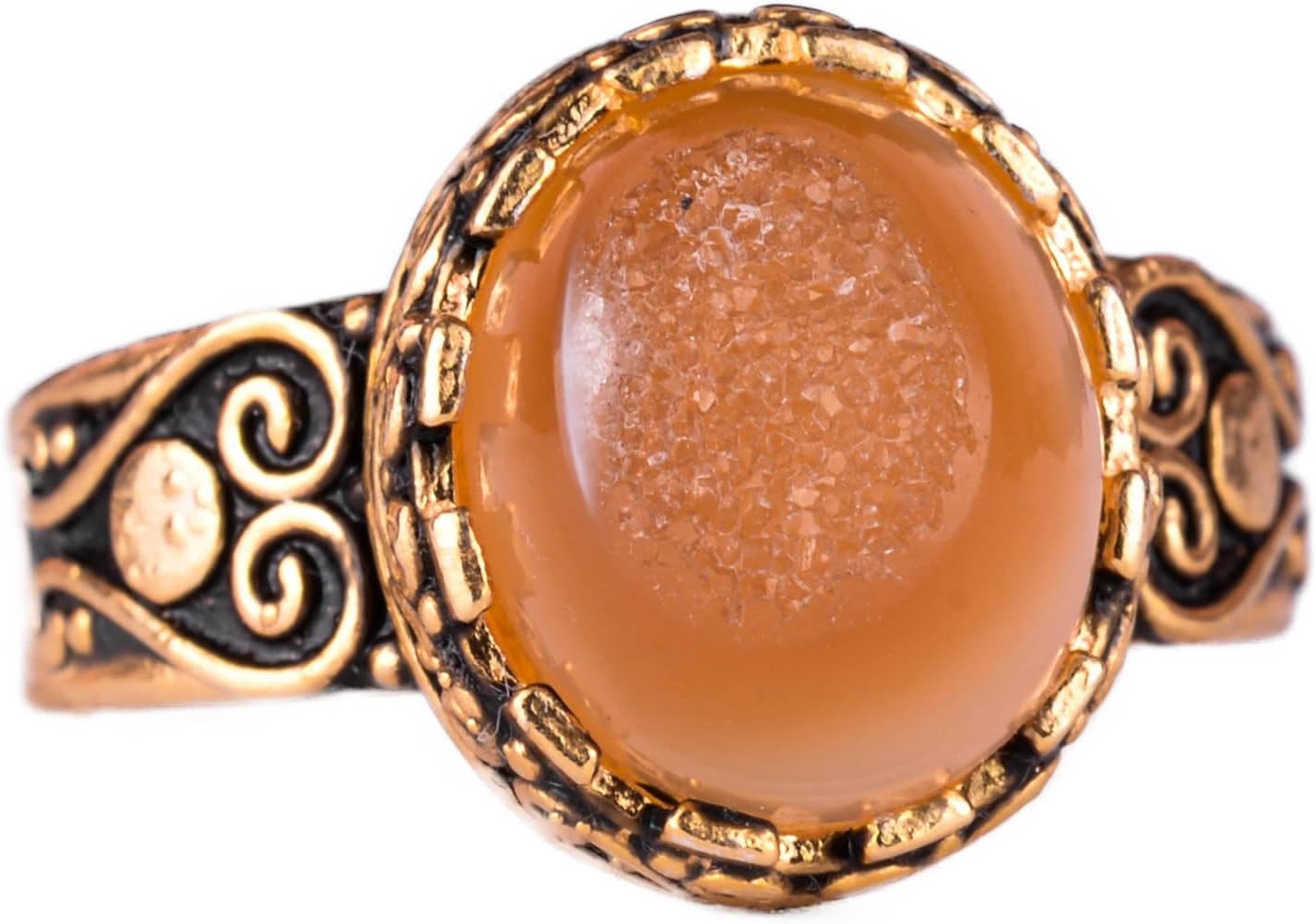 Gerçek Doğal Druzy Kuvars Taşı ile 925 Ayar Gümüş Altın Kaplama Yüzük, El Yapımı Kadın Yüzüğü (Sarı)