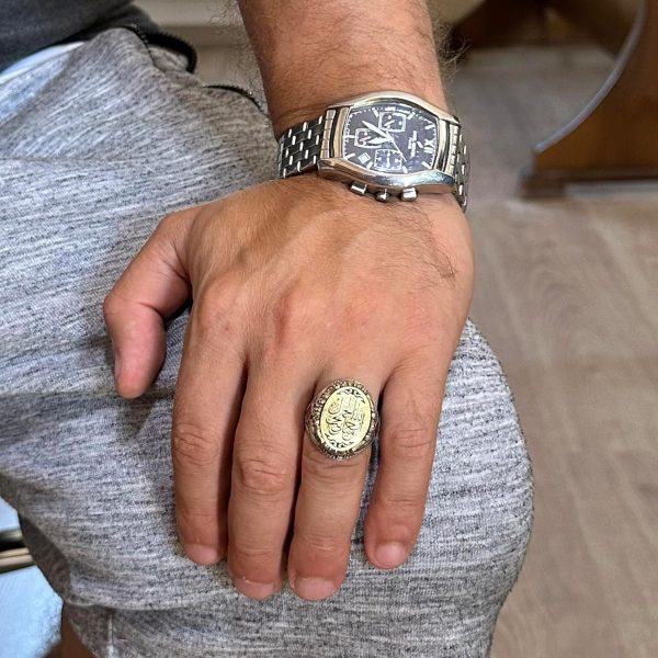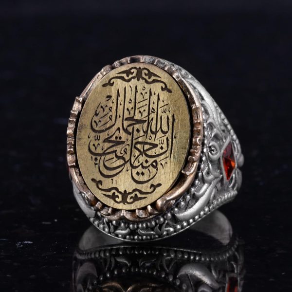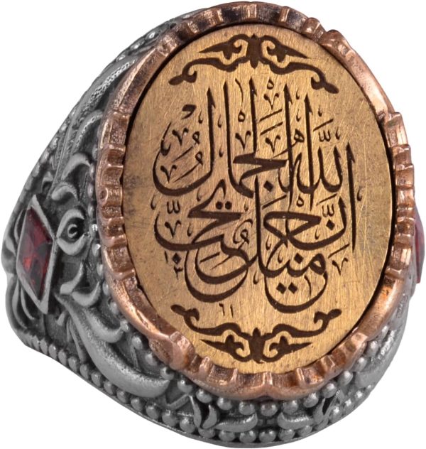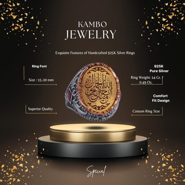 Karmaşık Arap hat yazısı, yüzüğün ruhsal cazibesini artırarak onu anlamlı bir aksesuar haline getirir. Eşsiz tasarımı ve kültürel önemi, bu yüzüğü inanç ve bağlılığın güçlü bir sembolü yapar.