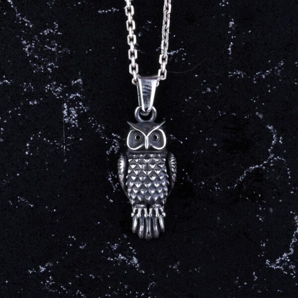 925 Ayar Gümüş Baykuş Kolye Ucu – El Yapımı Bilgelik Sembolü Takı – İnce Detaylar – Baykuş Severler için Hediye
