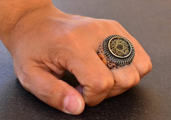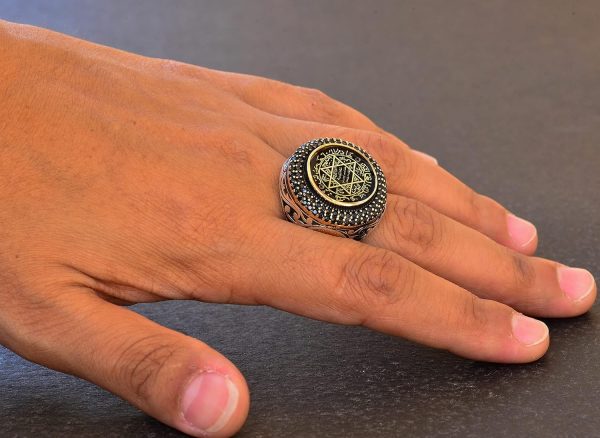 925 Ayar Gümüş Davut Yıldızı Yüzük, Mühür Yüzük, Davut Yıldızı Yüzüğü, Erkek Yüzük, El Yapımı Yüzük