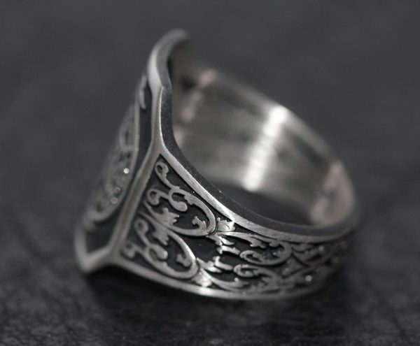 Bu yüzük, manevi miras ve bilgelik sembolüdür, kişisel tarzını ve değerlerini ifade etmek isteyenler için anlamlı bir parçadır. El yapımı tasarım, her yüzüğün benzersiz olmasını ve en yüksek özen ve hassasiyetle yapılmasını sağlar.
