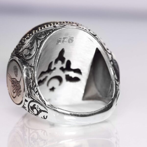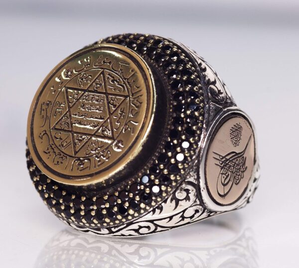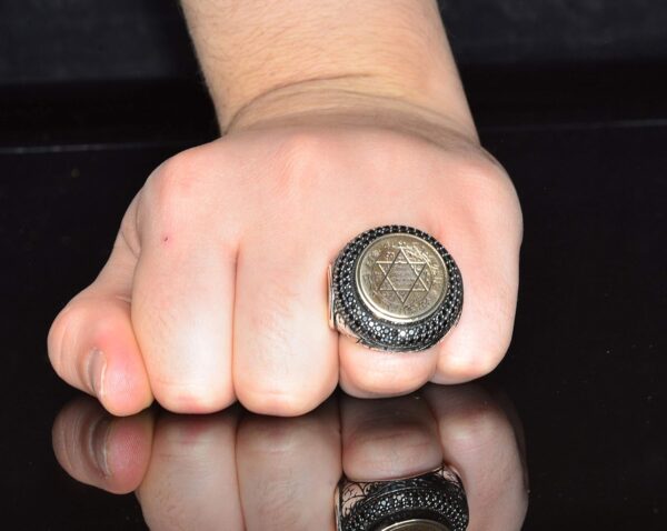 David Yıldızı ve Süleyman Mührü, inancı, korumayı ve bilgeliği temsil eden güçlü sembollerdir. Bu yüzüğü takmak, kişinin ruhsal yolculuğunun ve mirasla bağlantısının bir hatırlatıcısı olabilir, köklerine duyduğu gururu ve bağlılığı sağlar.