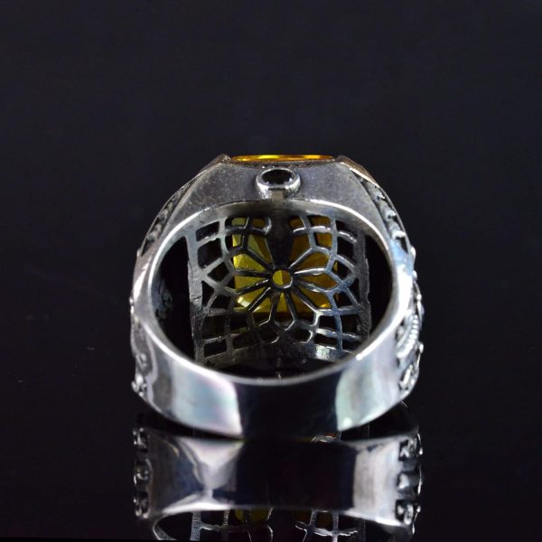 925 Ayar Gümüş Doğal Citrine Taşlı Erkek Gümüş Yüzük, Citrine Taşlı Erkek Yüzüğü, El Yapımı Oymalı Erkek Gümüş Yüzük, Türk Gümüş Yüzüğü, Sarı