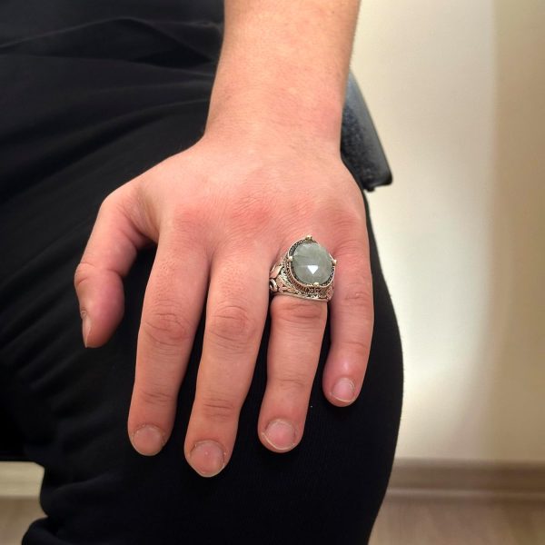 925 Ayar Gümüş El Yapımı Erkek Yüzük – Çeşitli Doğal Taşlarla Mevcut (Akvamarin)