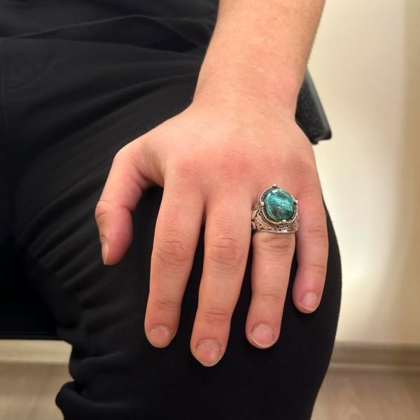 925 Ayar Gümüş El Yapımı Erkek Yüzük – Çeşitli Doğal Taşlarla Mevcut (Krisokolla)