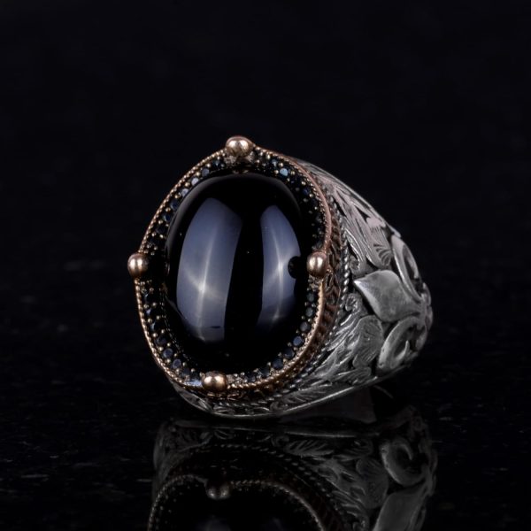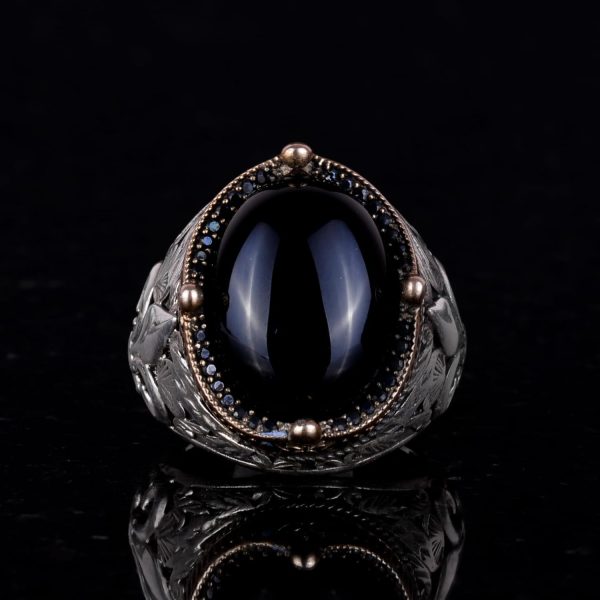925 Ayar Gümüş El Yapımı Erkek Yüzük – Çeşitli Doğal Taşlarla Mevcut (Oniks)