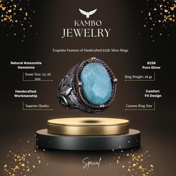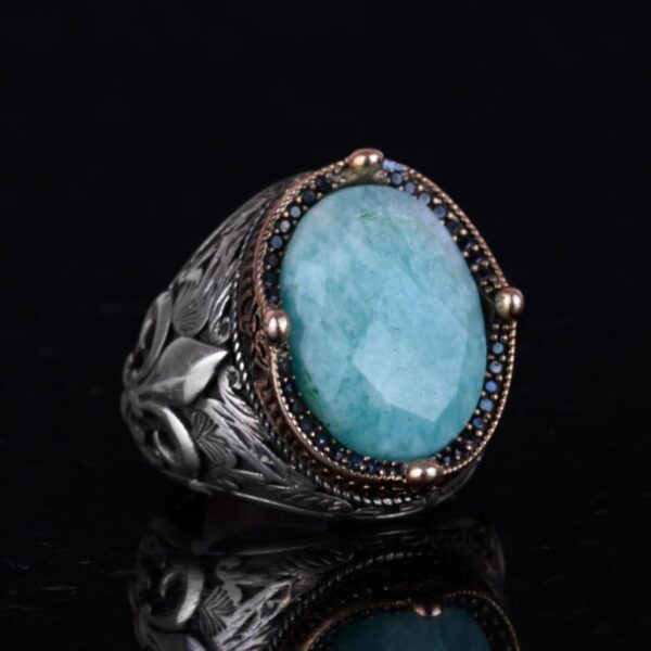 925 Ayar Gümüş El Yapımı Erkek Yüzük – Çeşitli Doğal Taşlarla Mevcuttur (Amazonit)