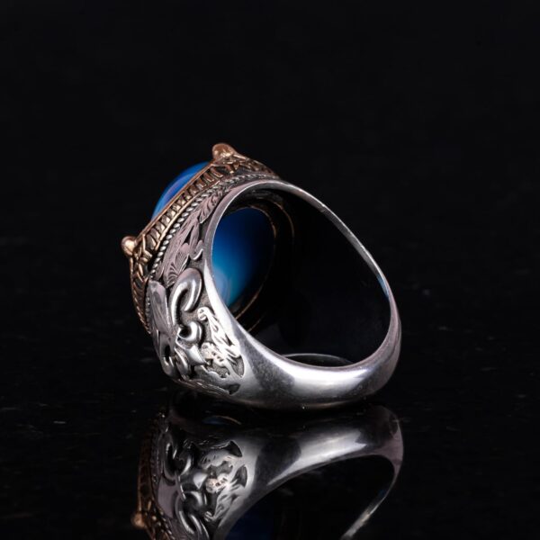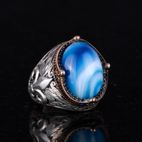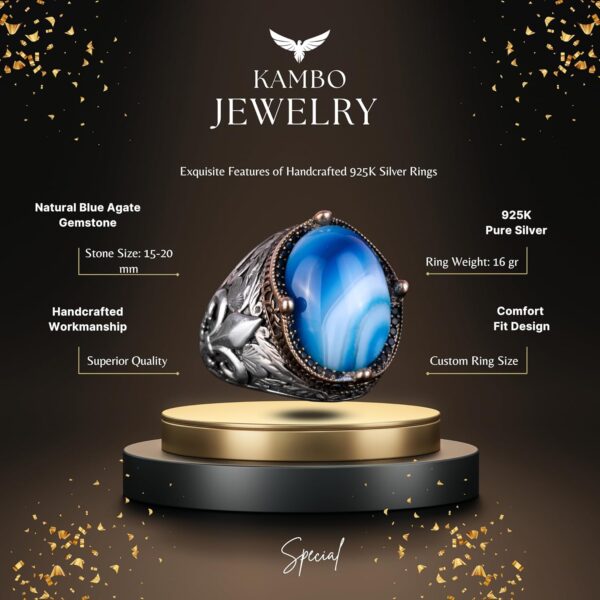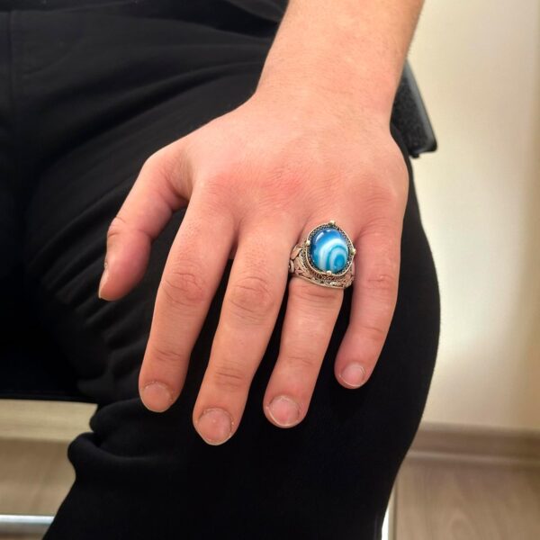 925 Ayar Gümüş El Yapımı Erkek Yüzük – Doğal Mavi Agate Taşlı