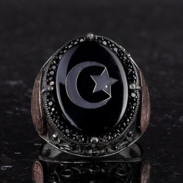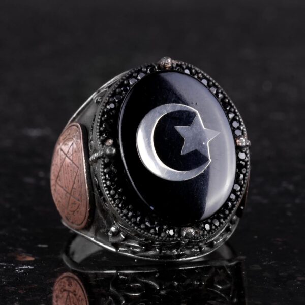 Detaylı tasarım, kültürel miras ve dini önemi simgeleyen yıldız ve hilal motiflerini içermektedir. Bu, yüzüğe tarihi ve manevi bir değer katmaktadır.
