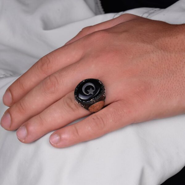 Eşsiz Desenli Yüzük – 925K Gümüş El Yapımı Erkek Yüzüğü – Yıldız ve Hilal Yüzüğü