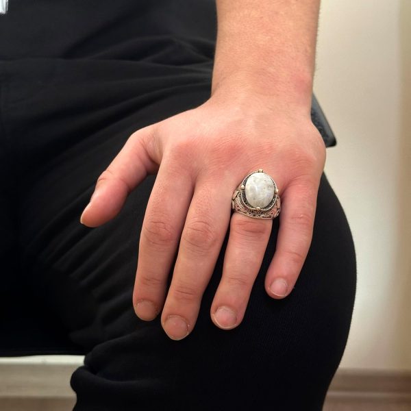 925 Ayar Gümüş El Yapımı Erkek Yüzük – Farklı Doğal Taşlarla Mevcut (Ateş Opali)