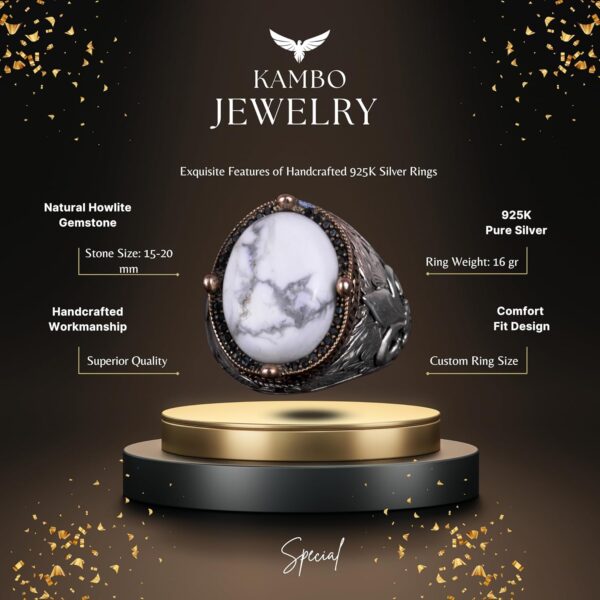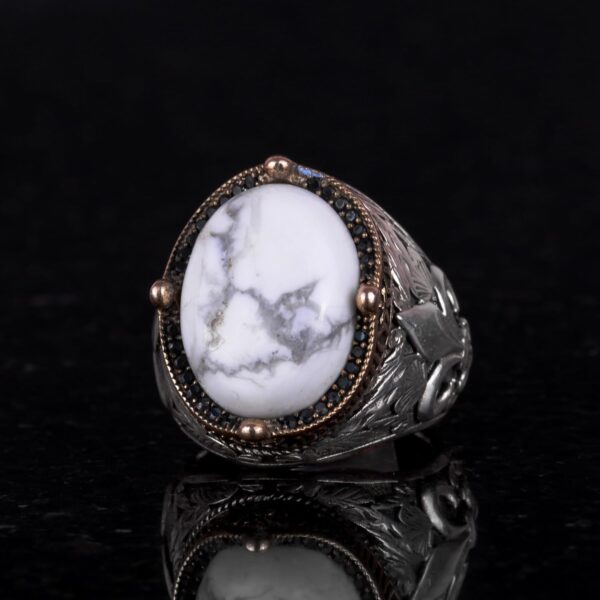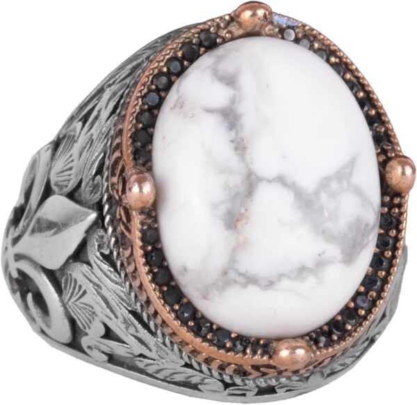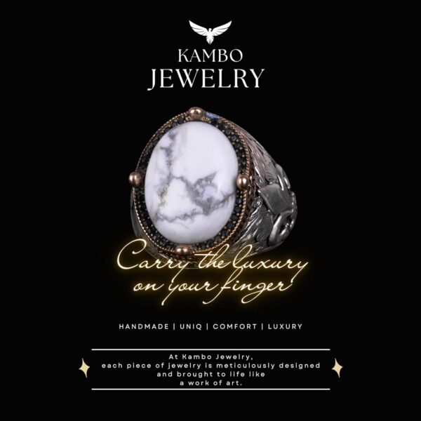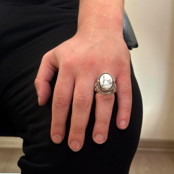 925 Ayar Gümüş El Yapımı Erkek Yüzük – Farklı Doğal Taşlarla Mevcut (Howlite)