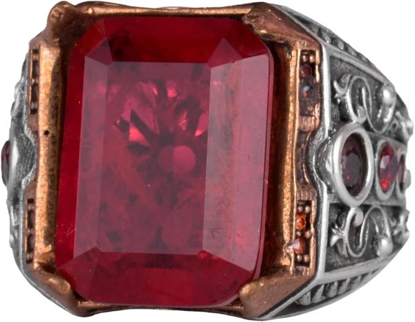 EL YAPIMI 925 AYAR GÜMÜŞ ERKEK YÜZÜK, YAPAY KIRMIZI PARAİBA TAŞI İLE