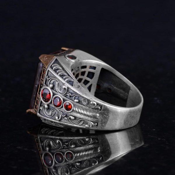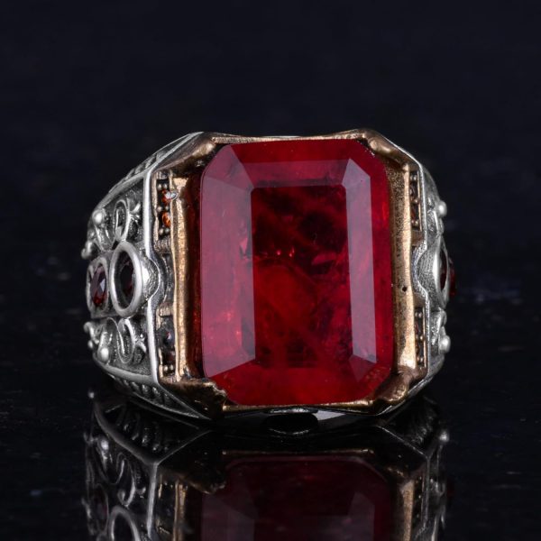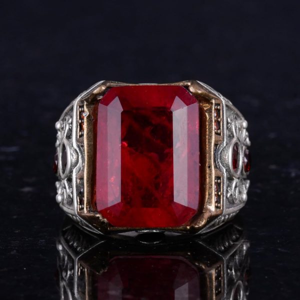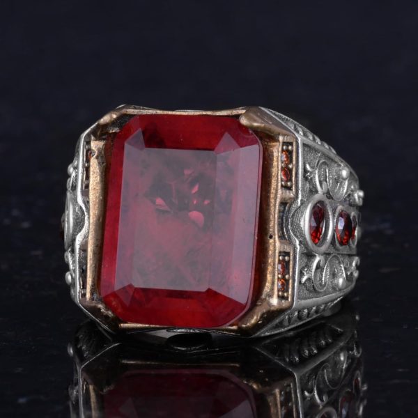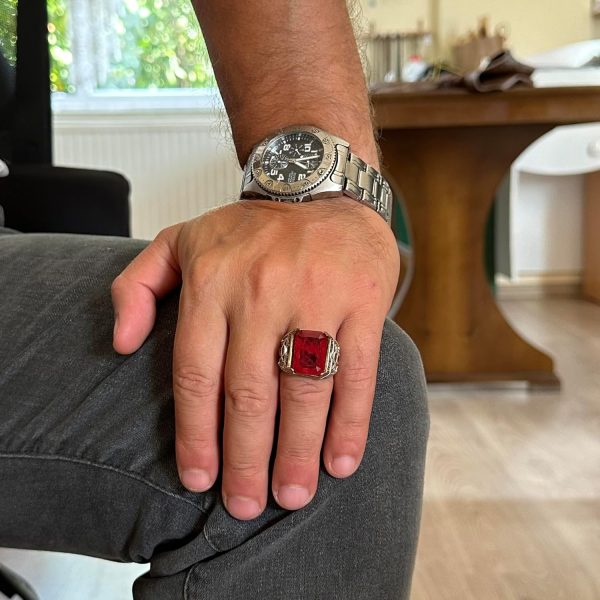 925 Ayar Gümüş El Yapımı Erkek Yüzük – Yapay Taş Yüzük – Erkek Yüzük (Yapay Kırmızı Paraiba)