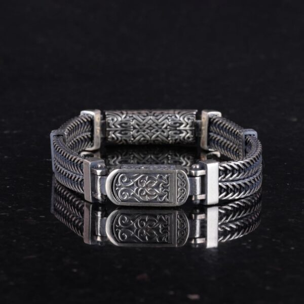 925 Ayar Gümüş Erkek Bilezik El Yapımı Detaylı Tasarım