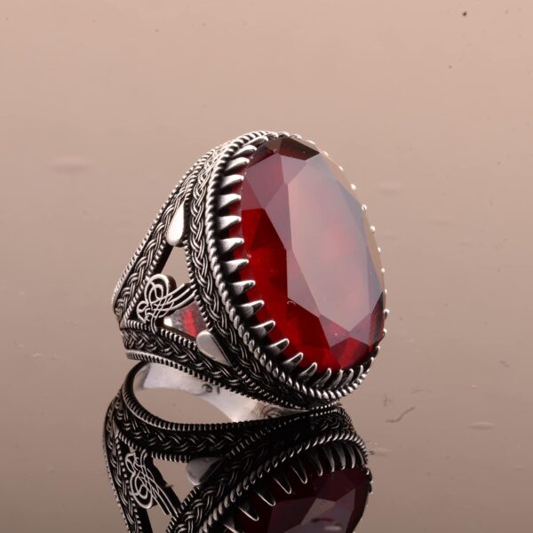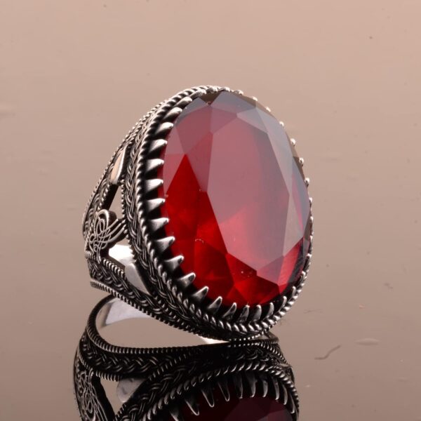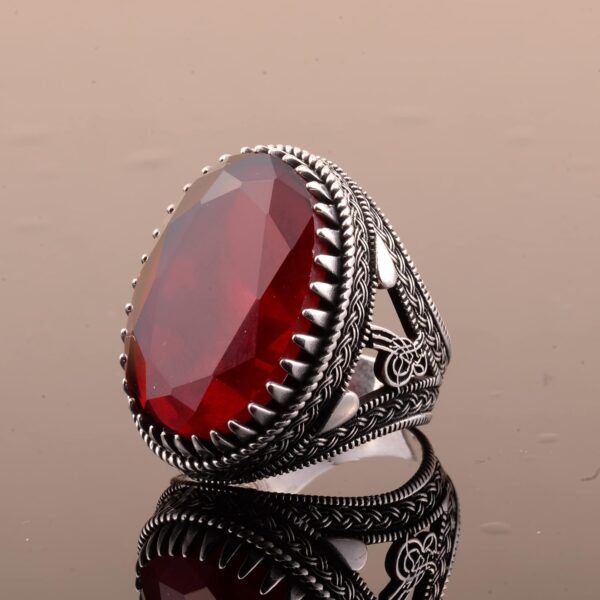 925 Ayar Gümüş Erkek Osmanlı Mühür Yüzük Yapay Granat Taşı ile