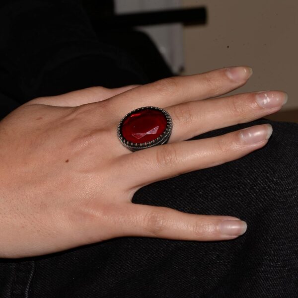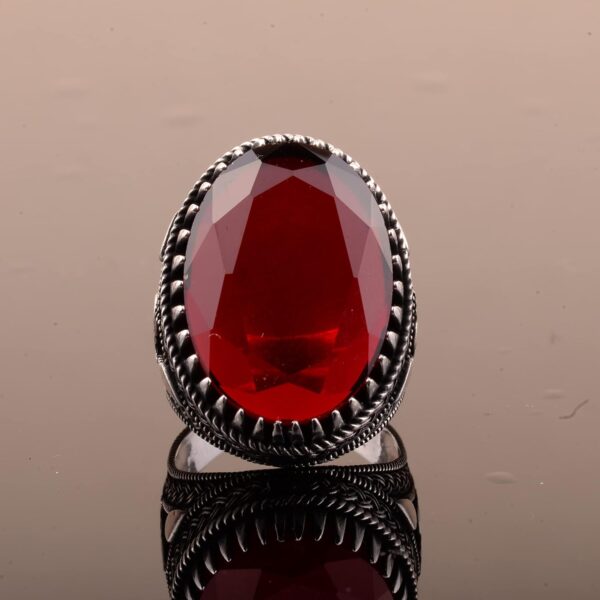 925 Ayar Gümüş Erkek Osmanlı Mühür Yüzük, Yapay Granat Taşı ile