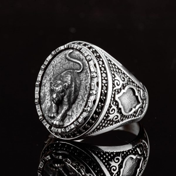 - CESUR PANTHER TASARIMI: Özenle detaylandırılmış bir panter içeren bu yüzük, güç, kuvvet ve gizliliği simgeler.